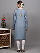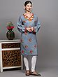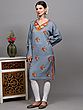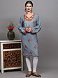 Sodalite-Blue Aari Embroidered Phiran from Kashmir with Side Pockets
