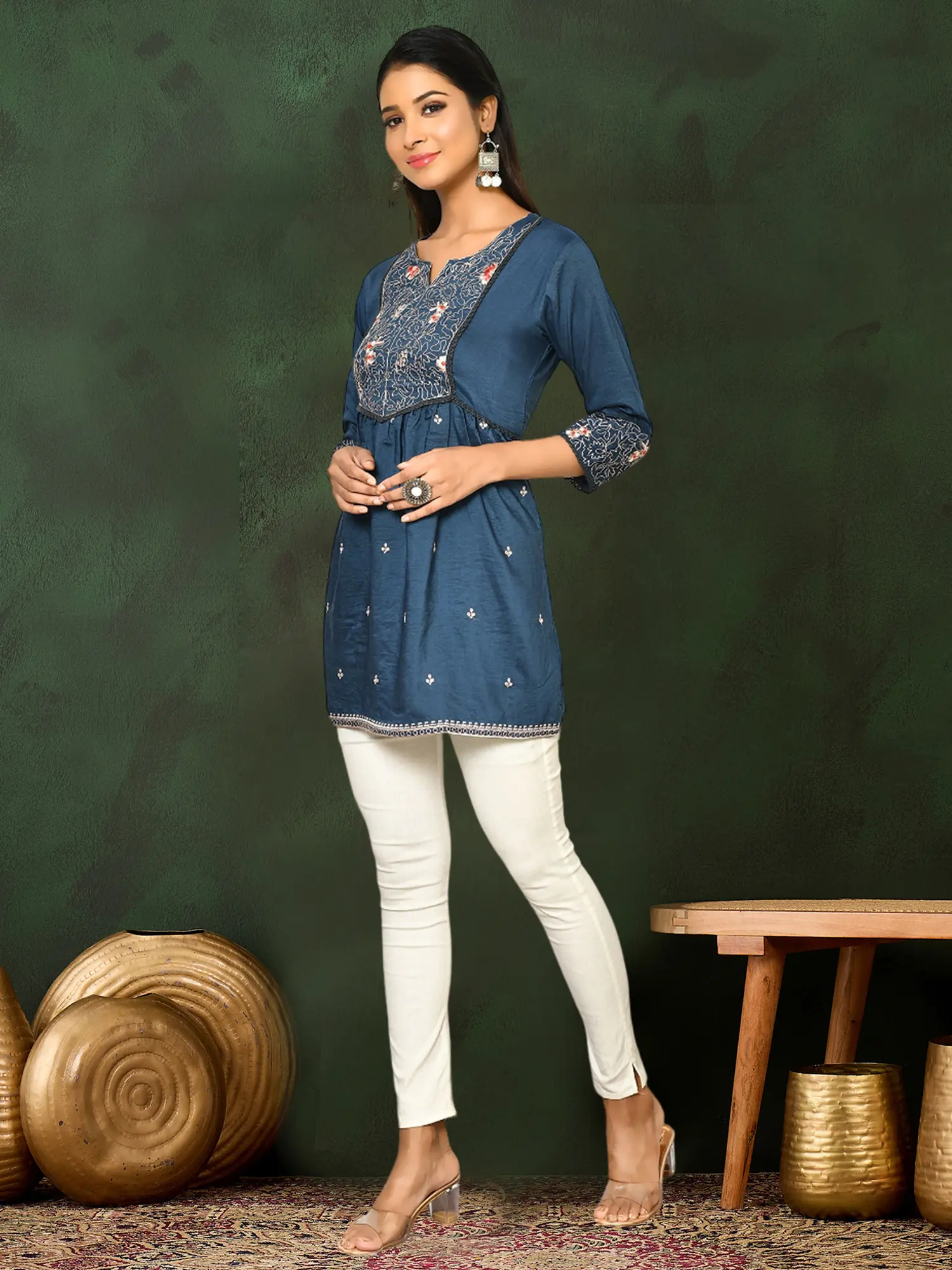 “Flora” a Flower - Hand Block Printed Panelled Flared Skirt with Front Open Top