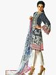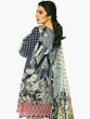 Completing this ensemble is a breathtaking chiffon dupatta. This ethereal accessory is adorned with a flowing, abstract print featuring shades of blue, white, and hints of red, perfectly complementing the colors of the kameez and trousers. The lightweight nature of the chiffon allows it to drape beautifully, adding a touch of graceful movement to your silhouette. The delicate print on the dupatta acts as a sophisticated finishing touch, tying the entire outfit together seamlessly. This set is more than just clothing; it's an expression of personal style and a celebration of exquisite design. Elevate your look with this stunning salwar suit, designed to make you feel confident and beautiful with every wear.
