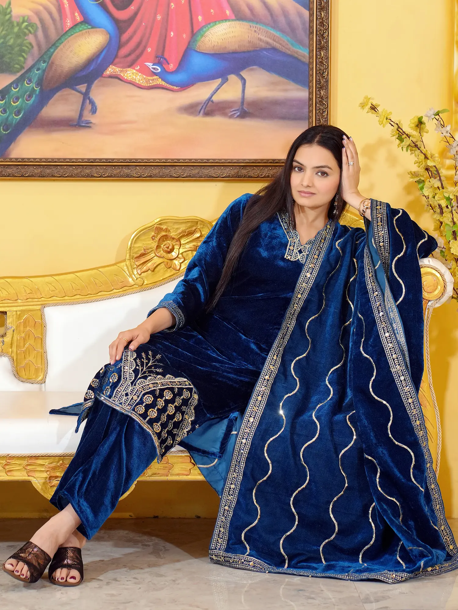 Viscose Blend Embroidery And Sequins Work Paisleys Motifs Straight Kurta Set With Dupatta