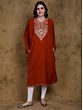 This Bombay-Brown Wool Phiran is more than just a garment; it's a statement. It speaks to a woman who values quality, appreciates craftsmanship, and appreciates timeless elegance. This exquisite piece transcends fleeting fashion trends, offering a lasting investment in personal style. Wear it with your favorite leggings and stylish flats for a casual look, or pair it with more formal trousers and heels for a sophisticated ensemble. The versatile nature of this phiran ensures that it will adapt to your individual style and become a cherished part of your wardrobe for years to come. It's a testament to the enduring appeal of traditional craftsmanship and its ability to elevate the modern woman's style. The perfect blend of heritage and modern aesthetics.