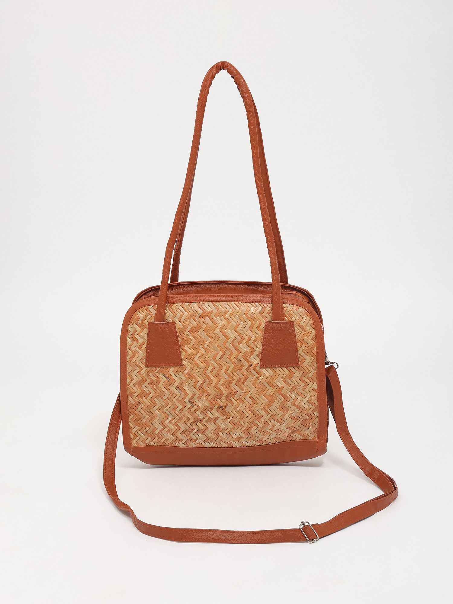 Burnt-Brick Bamboo Stripe Shoulder Bag with Dual Zip