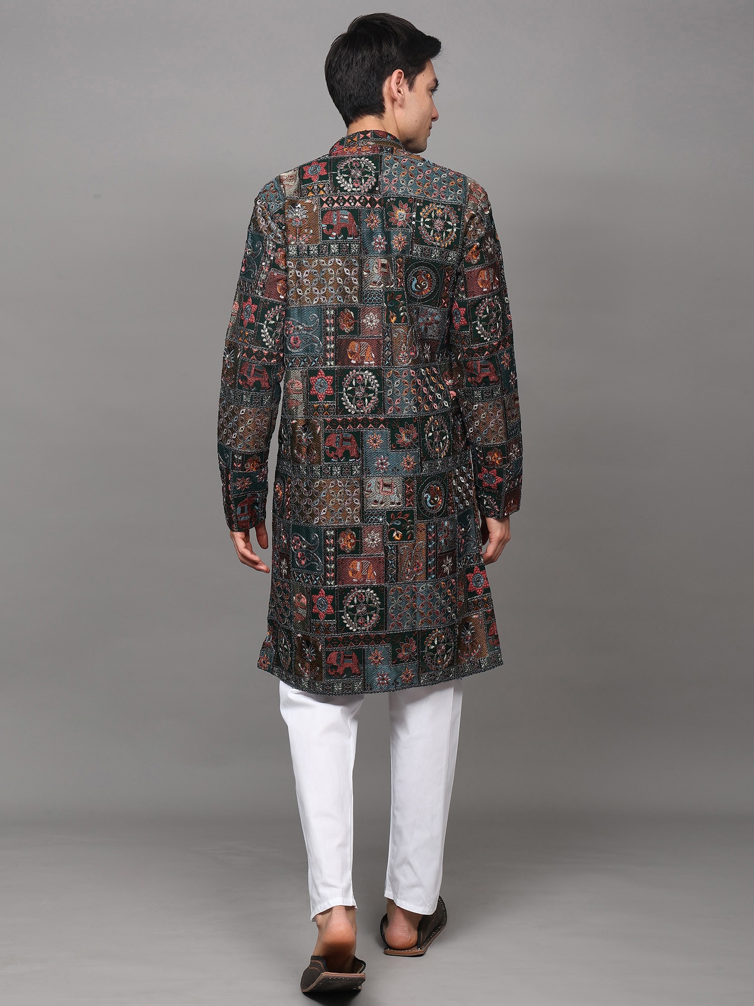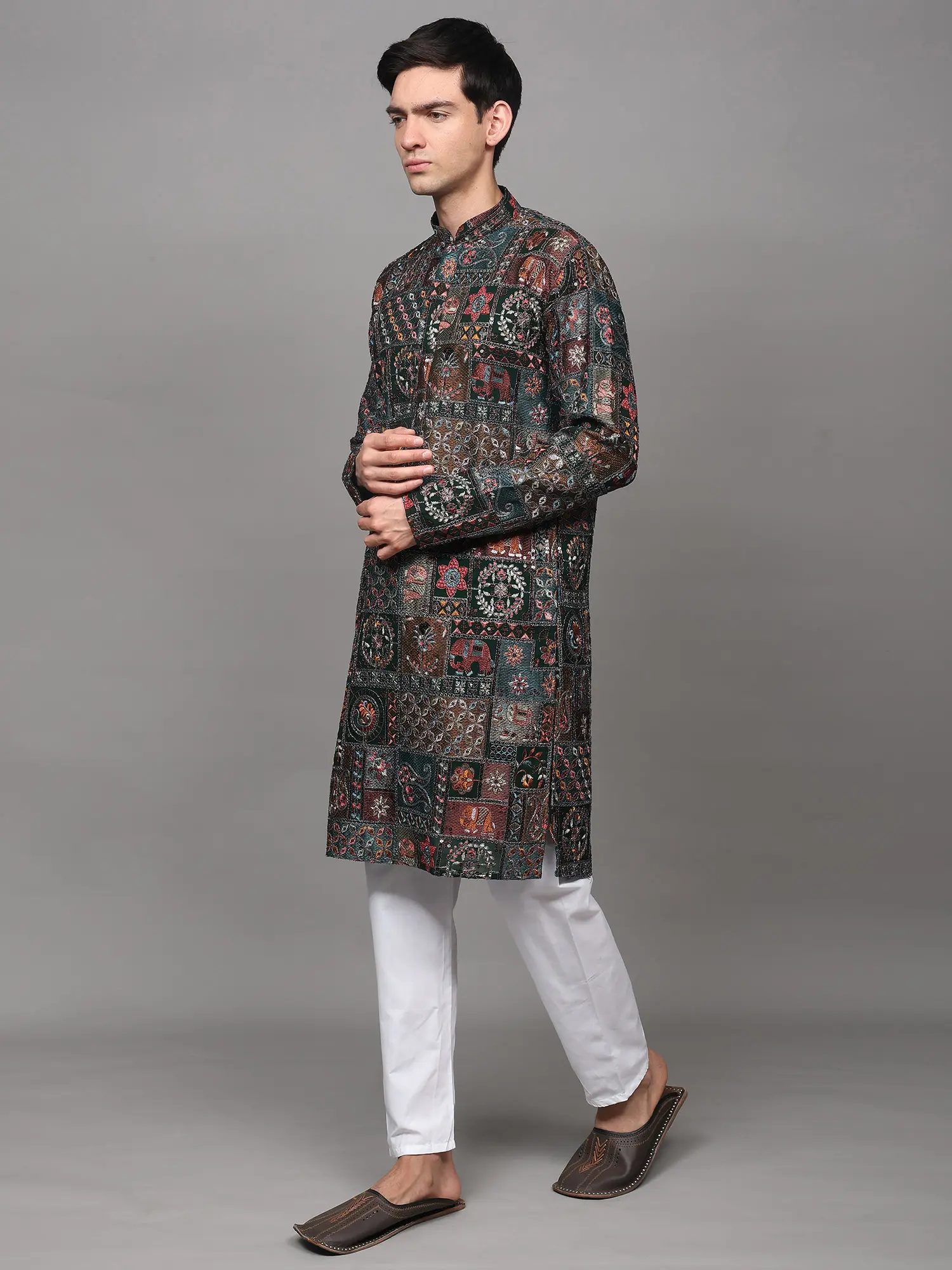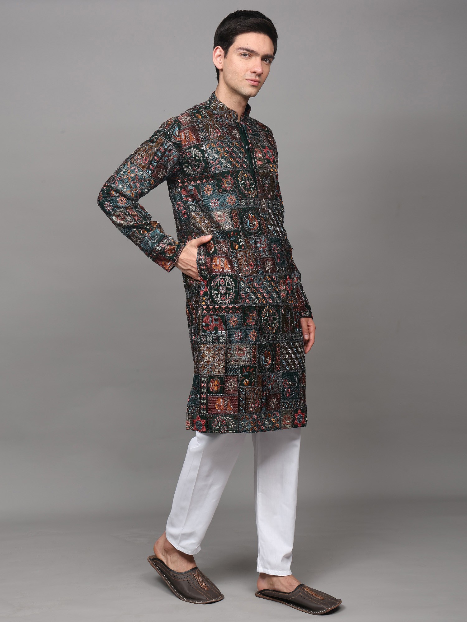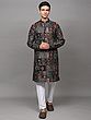 Pirate-Black Embellished Kurta with Sequin Work and Cream Pajama