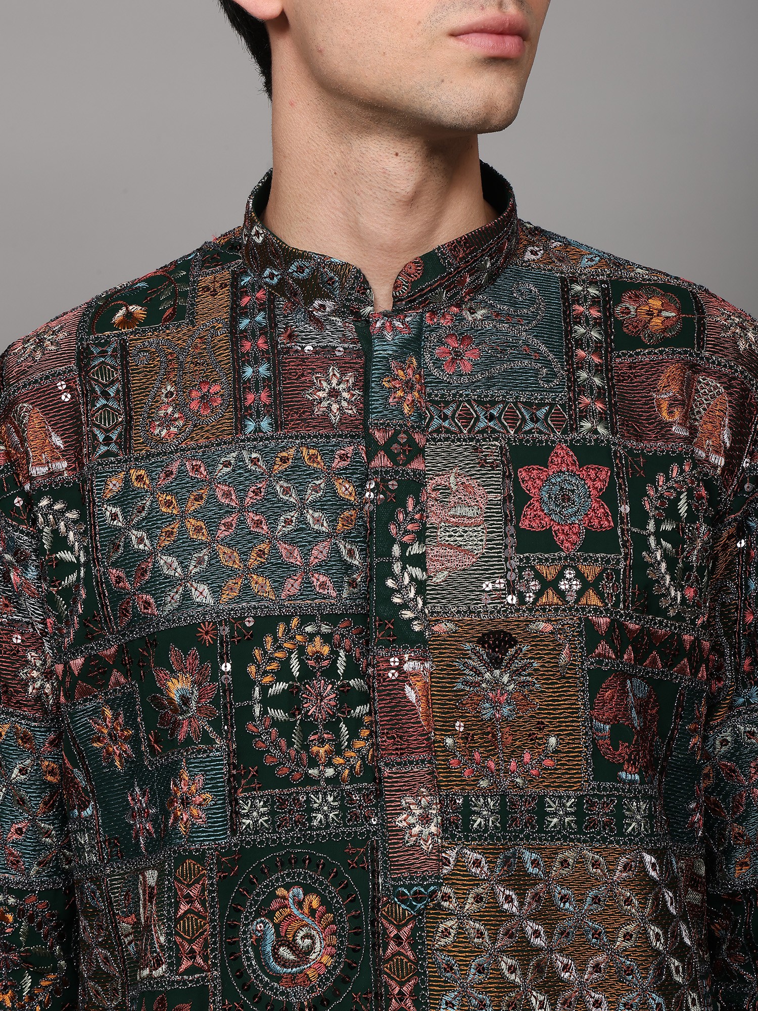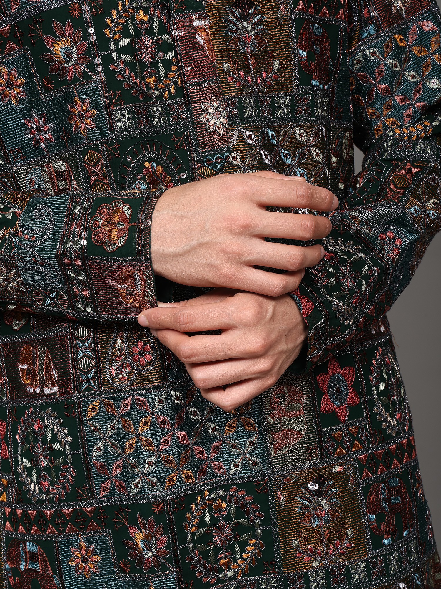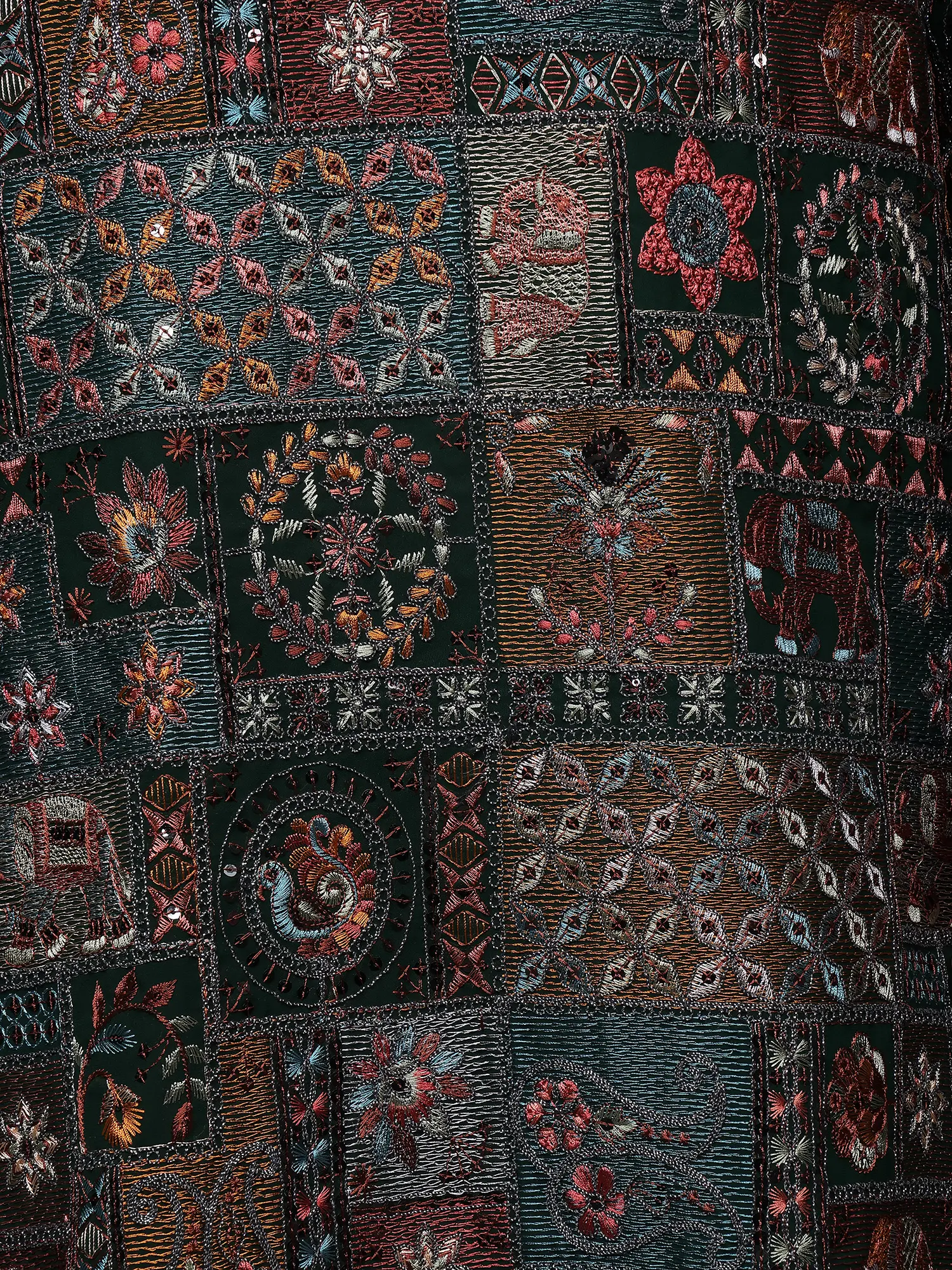 Pirate-Black Embellished Kurta with Sequin Work and Cream Pajama