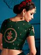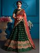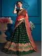 Bottle-Green Satin Lehenga Choli with Zari floral motif and Red Sheer Dupatta