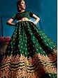Bottle-Green Net Beads and Golden Thread Embroidery Lehenga Choli with Cutwork Dupatta