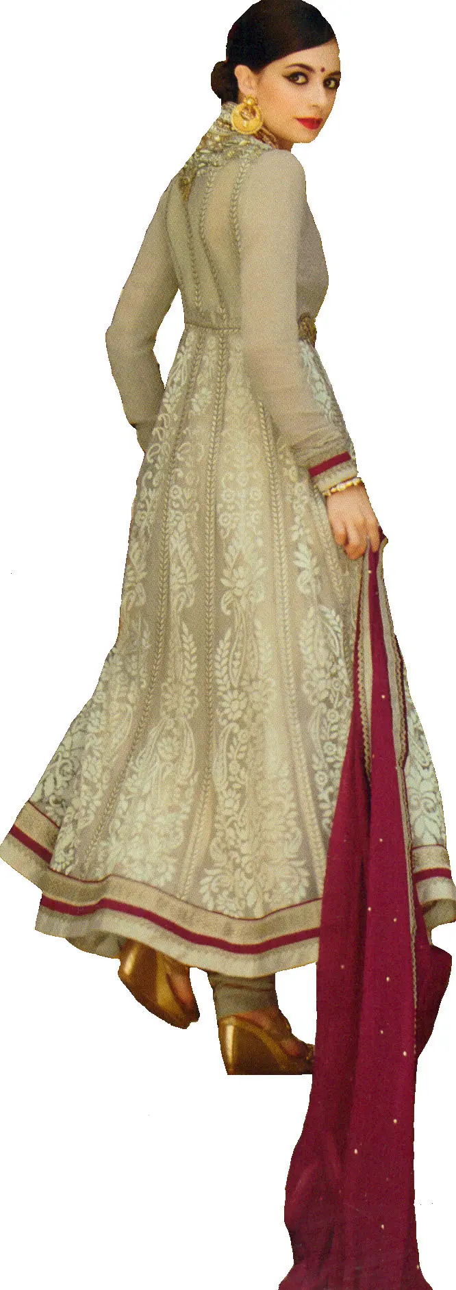 Creme-Brulee Double Layered Anarkali Suit with Zardosi Embroidery in Vibrant Hues