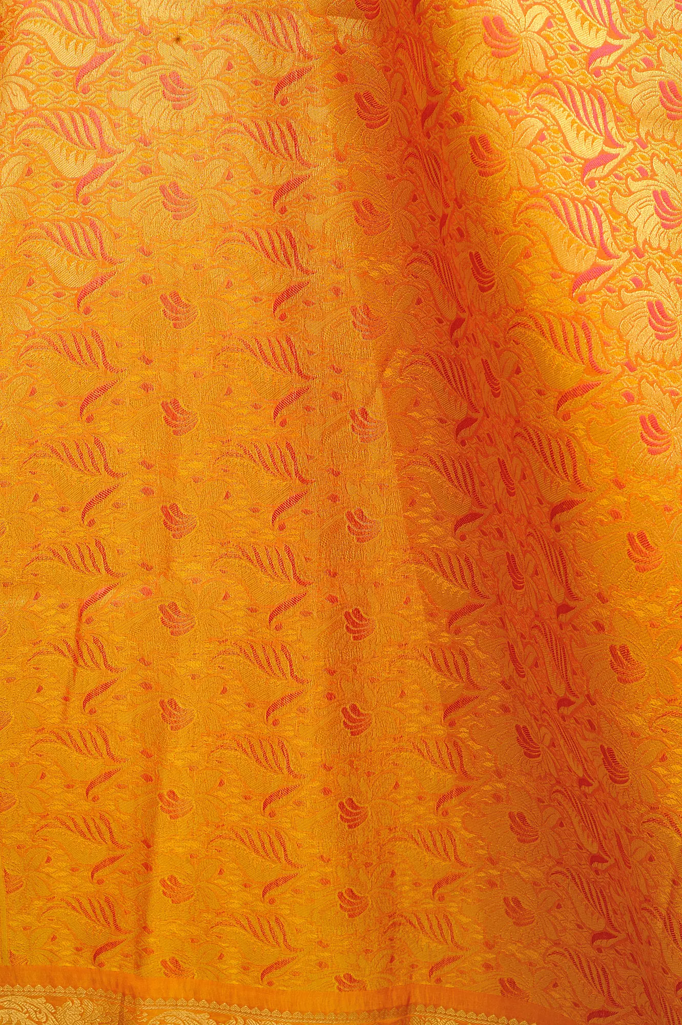 Enrich your ethnic wardrobe with the Boysenberry and Nugget Brocaded Saree from Bangalore, a regal masterpiece adorned with Woven Paisleys and Zari Weave. The harmonious contrast of purple and orange dances across the fabric, enhanced by intricate brocade work. Each thread weaves a tale of India's rich heritage, reflecting the opulence of traditional wear. Crafted from art silk, it exudes both luxury and comfort, making regal fashion affordable. Embrace the allure of this Saree, where colors and craftsmanship unite, allowing you to drape yourself in the stories of India's grandeur while enjoying the sumptuous touch of art silk.