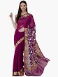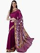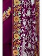 Deep-Purple Georgette Saree from Kashmir with Aari Embroidered Floral Paisleys Border and Pallu