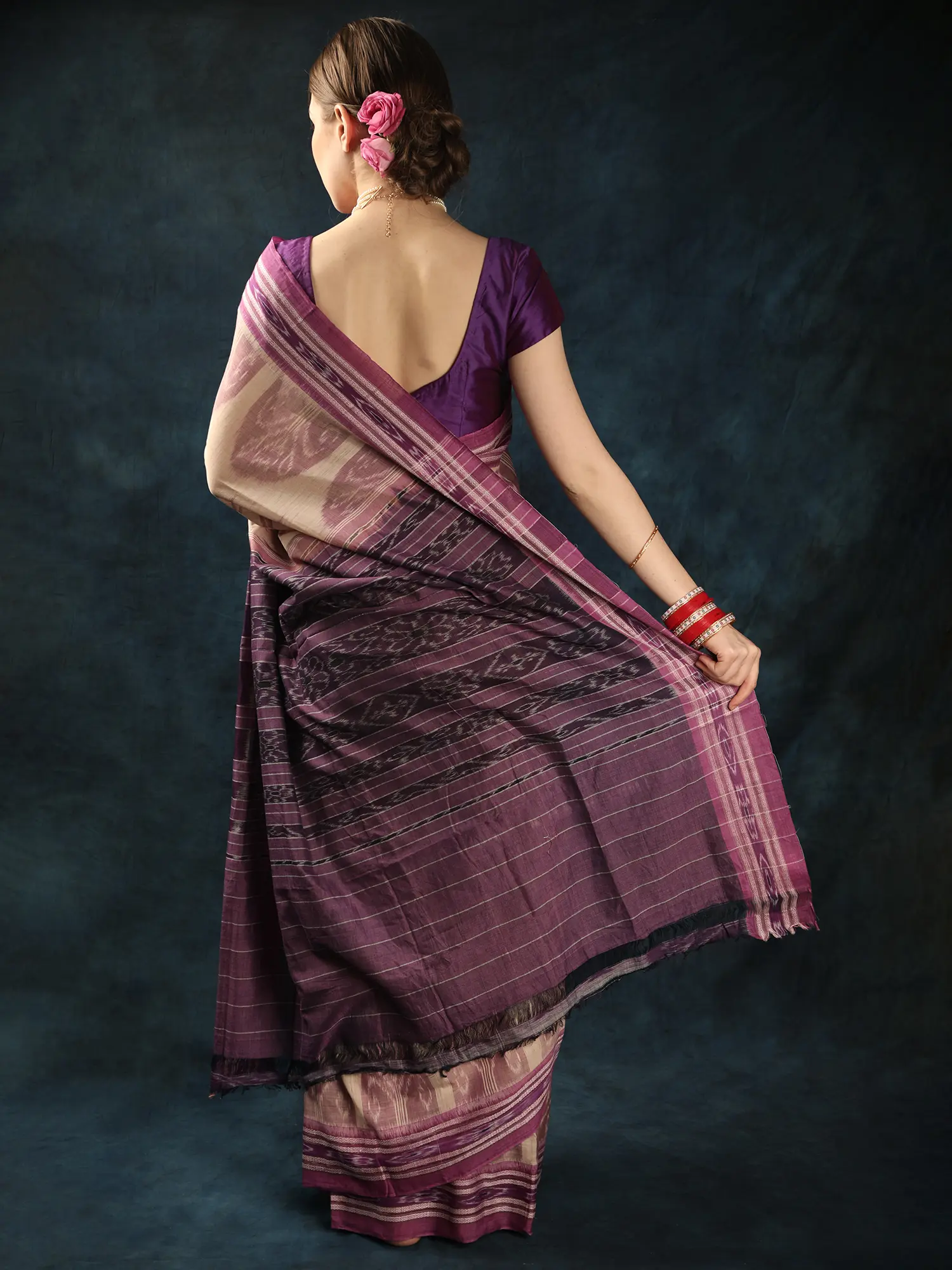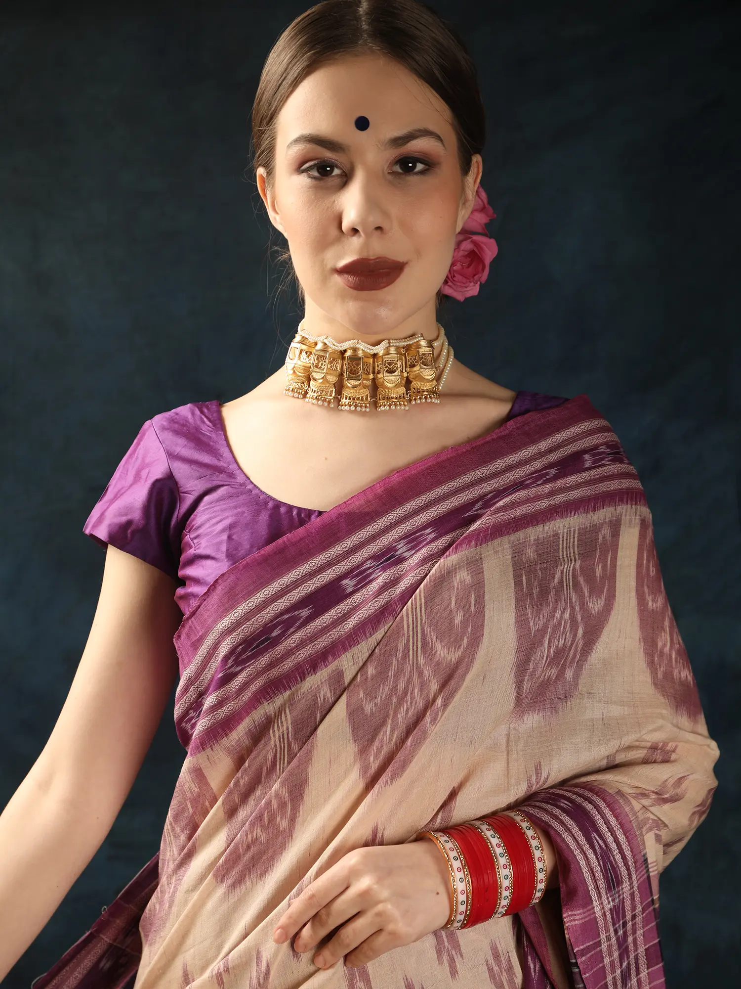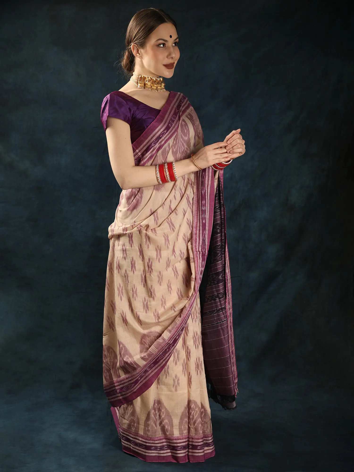 Cedar-Green Sambalpuri Stole from Odisha with Ikat Weave