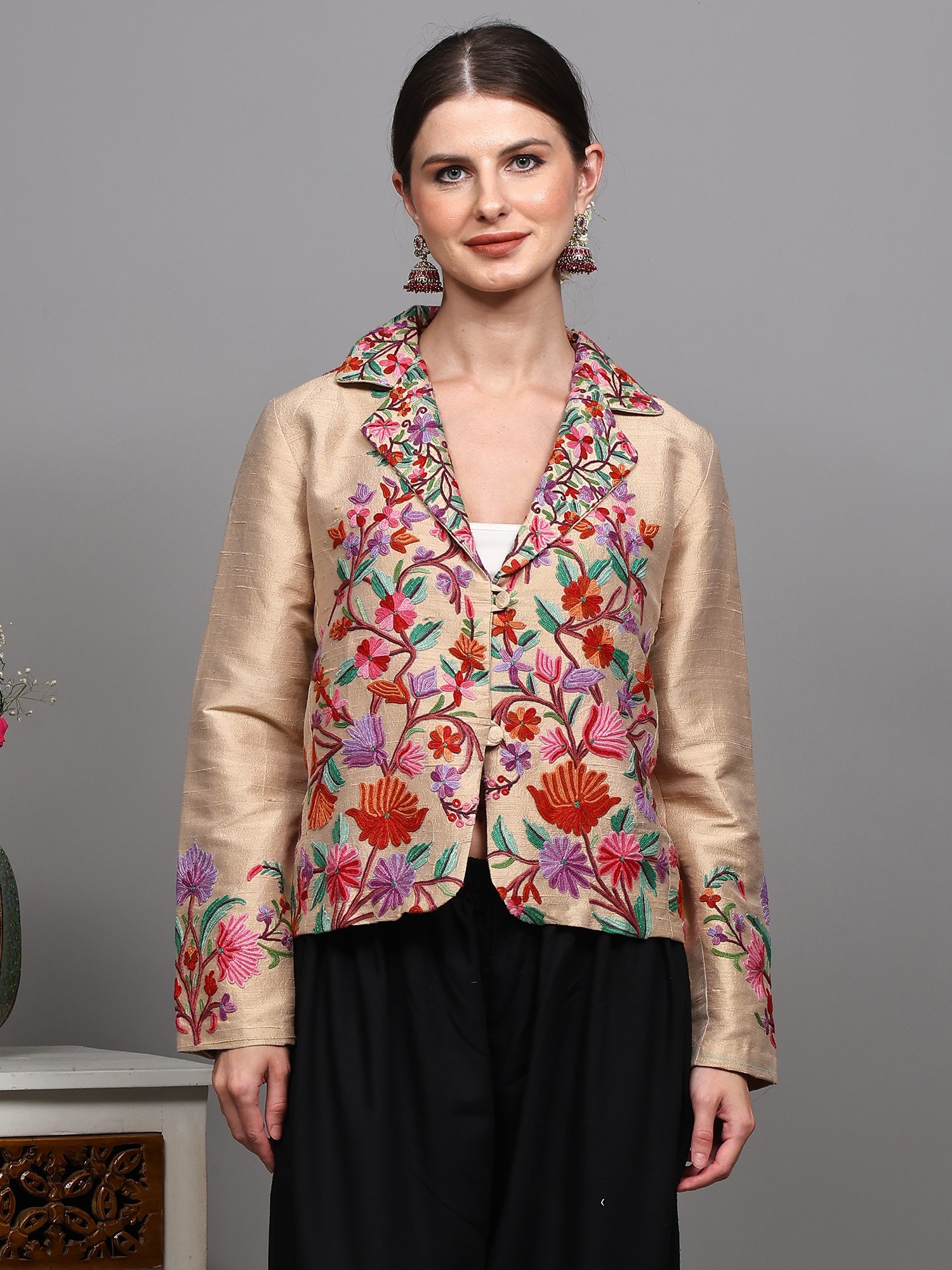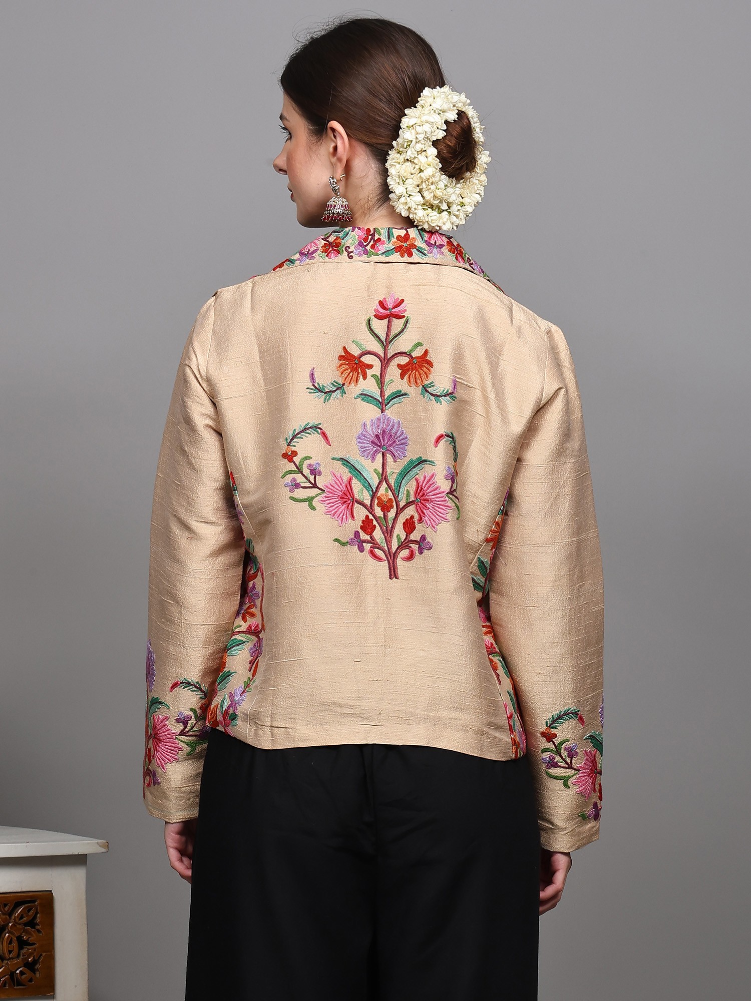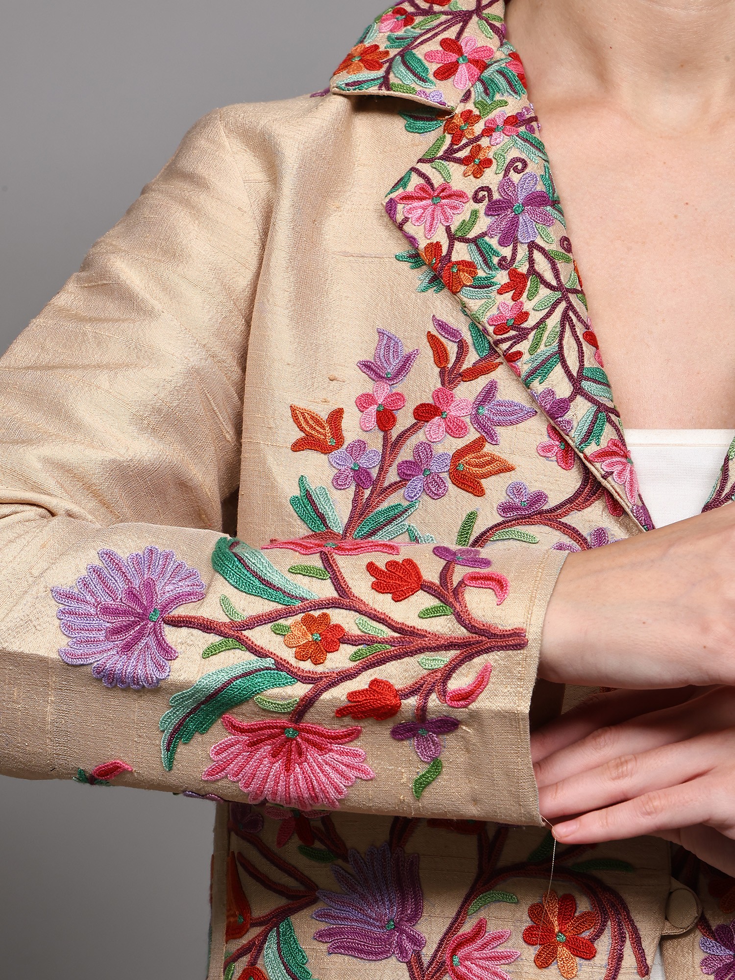 Aari Embroidered Long Jacket From Kashmir with Floral Vine Patterns