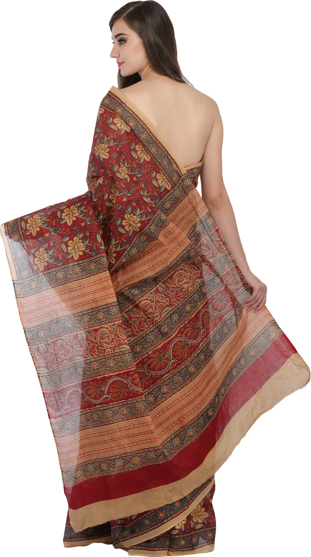 The tradition of Kalamkari sarees not only preserves the intricate craft of Kalamkari but also allows you to be enveloped in its aesthetic embrace, a true cultural delight.