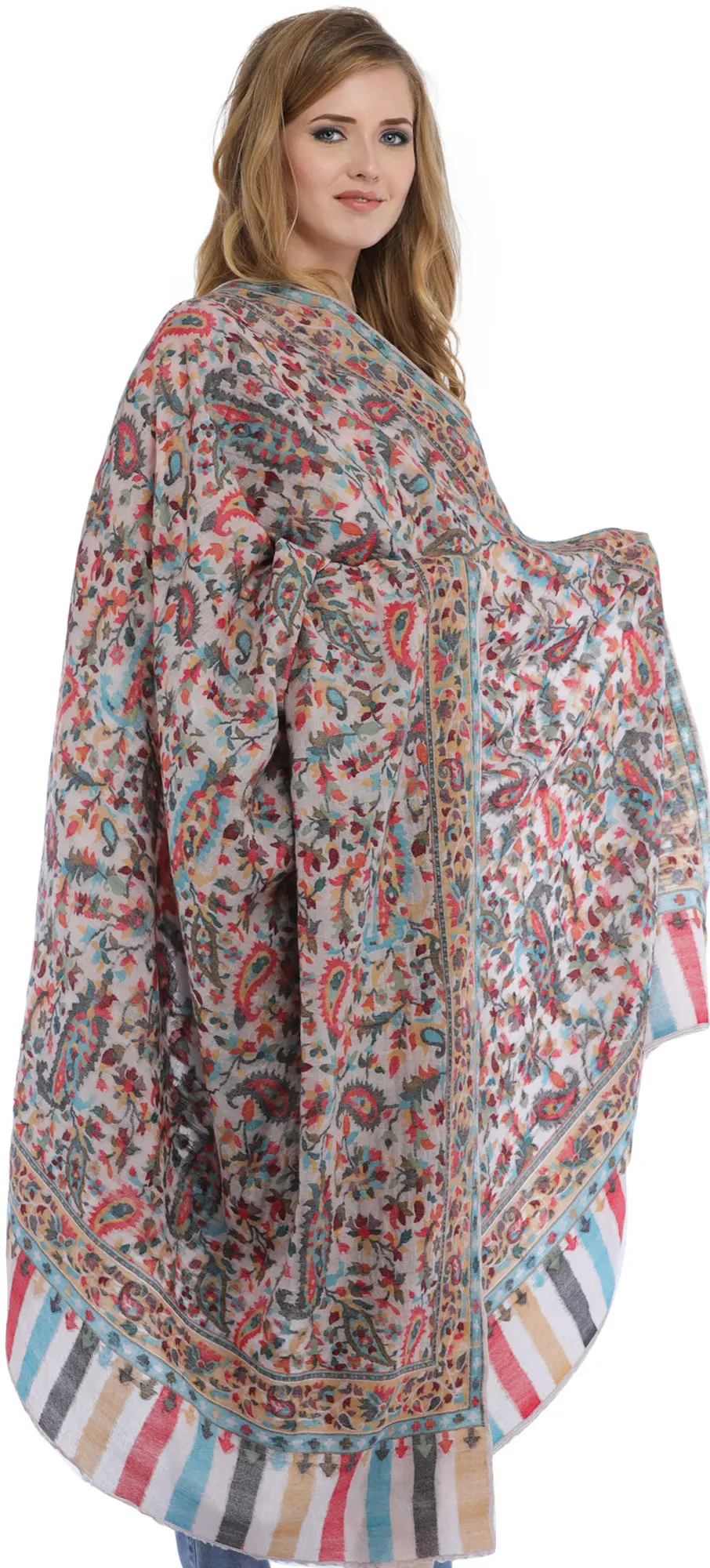 Kani Jamawar Shawl with Woven Multicolor Flowers and Paisleys All-Over