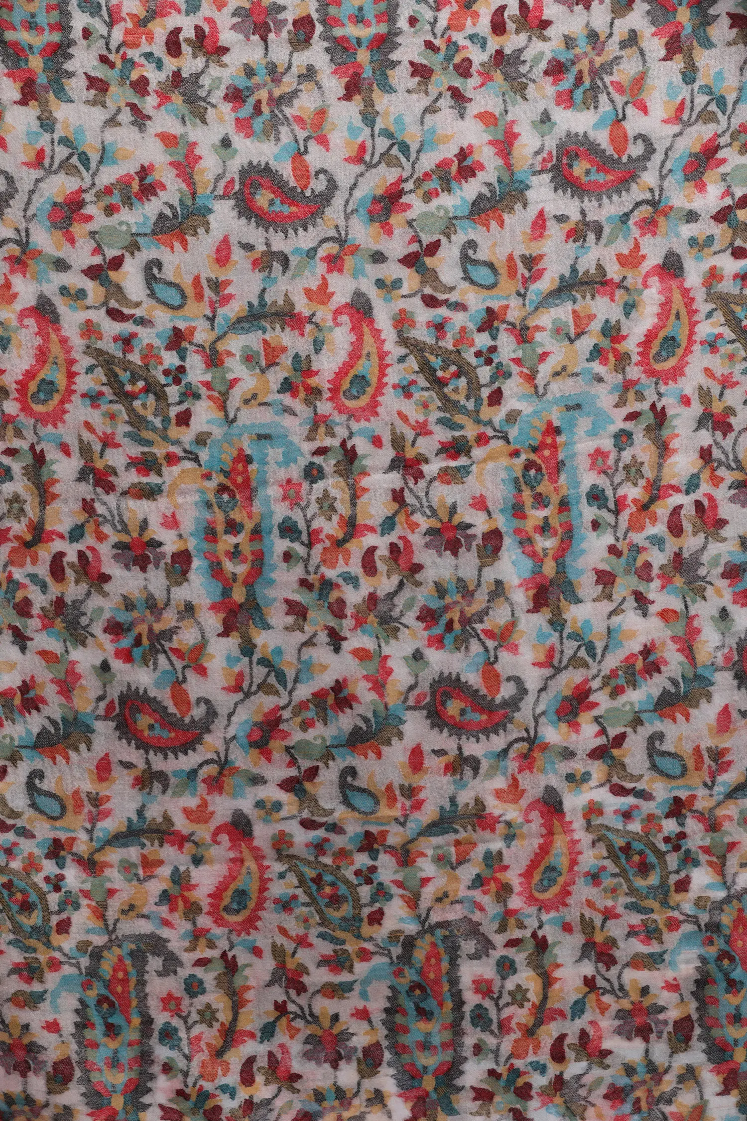 Snow White Wool Shawl: Intricate Kani Jamawar Weaving with Blooms and Paisleys