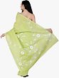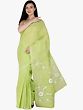 Willow-Green Saree from Lucknow with Golden Border and Chikan Hand-Embroidery
