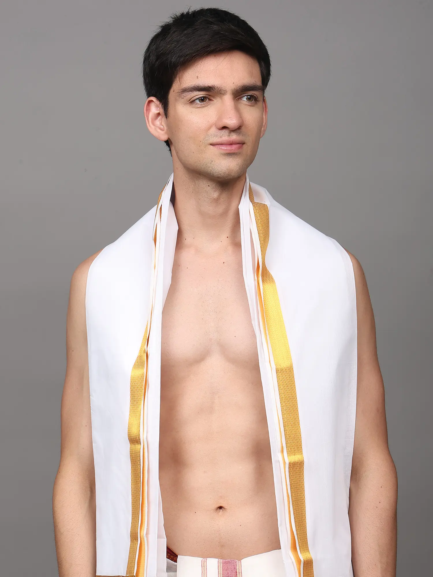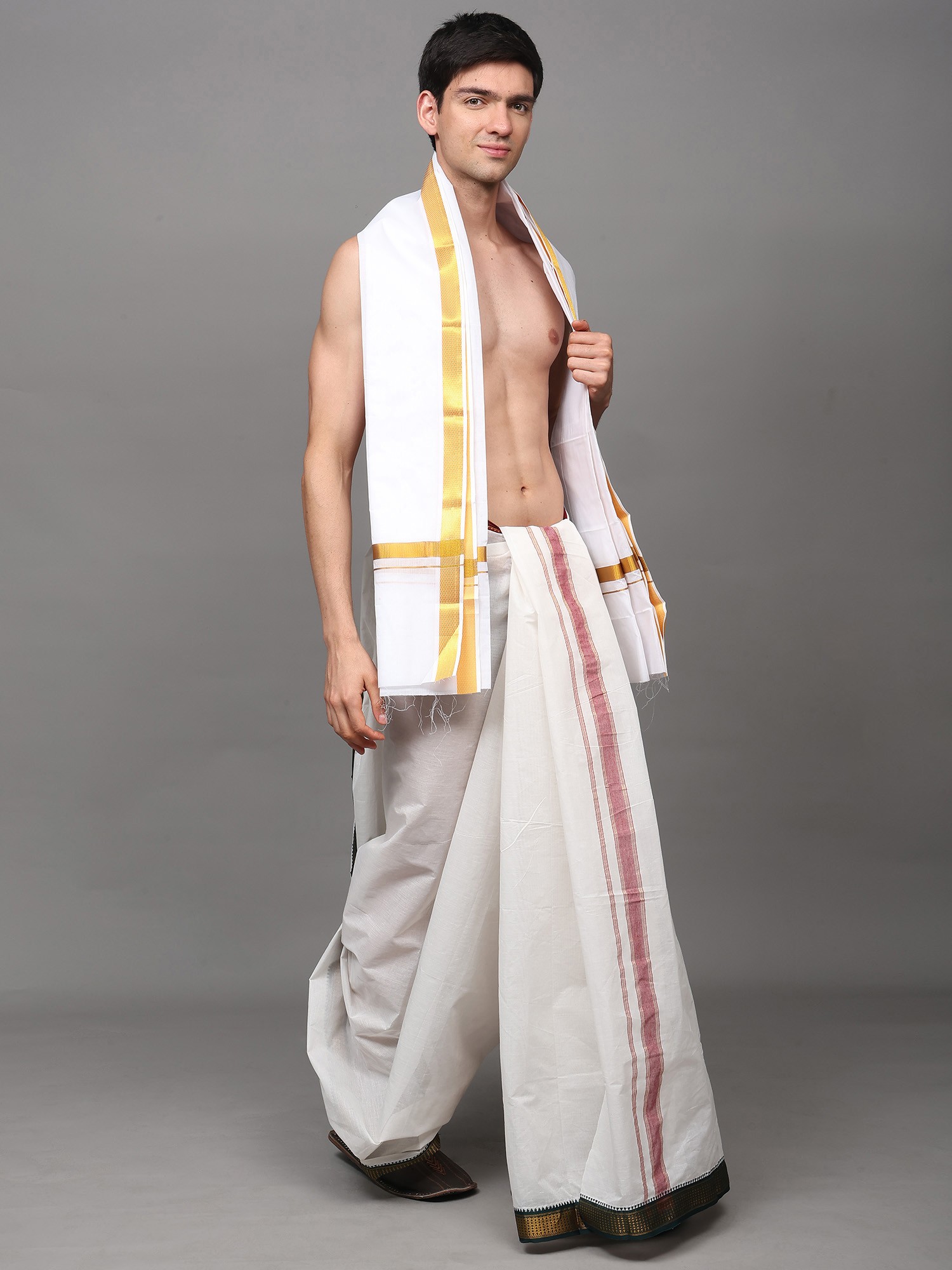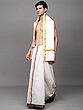 Star-White Zari Woven Border Drape Dhoti with with Angavastram Set