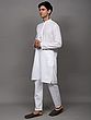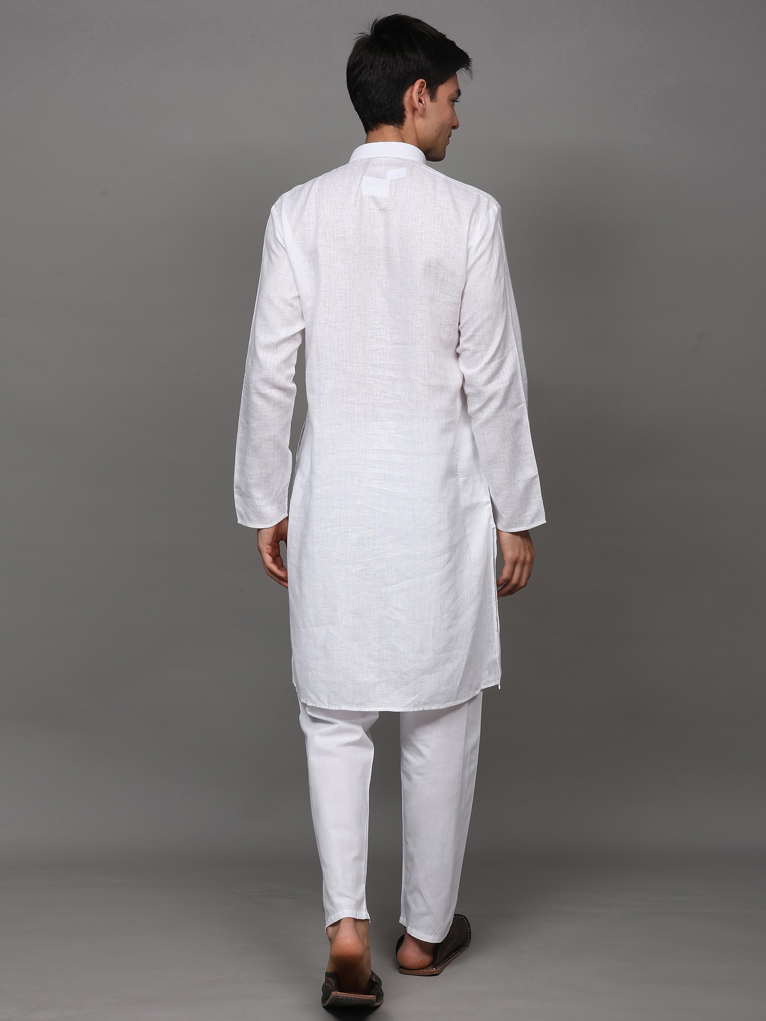 Lucent-White Cotton Kurta Pajama Set with Embroidery on Neck