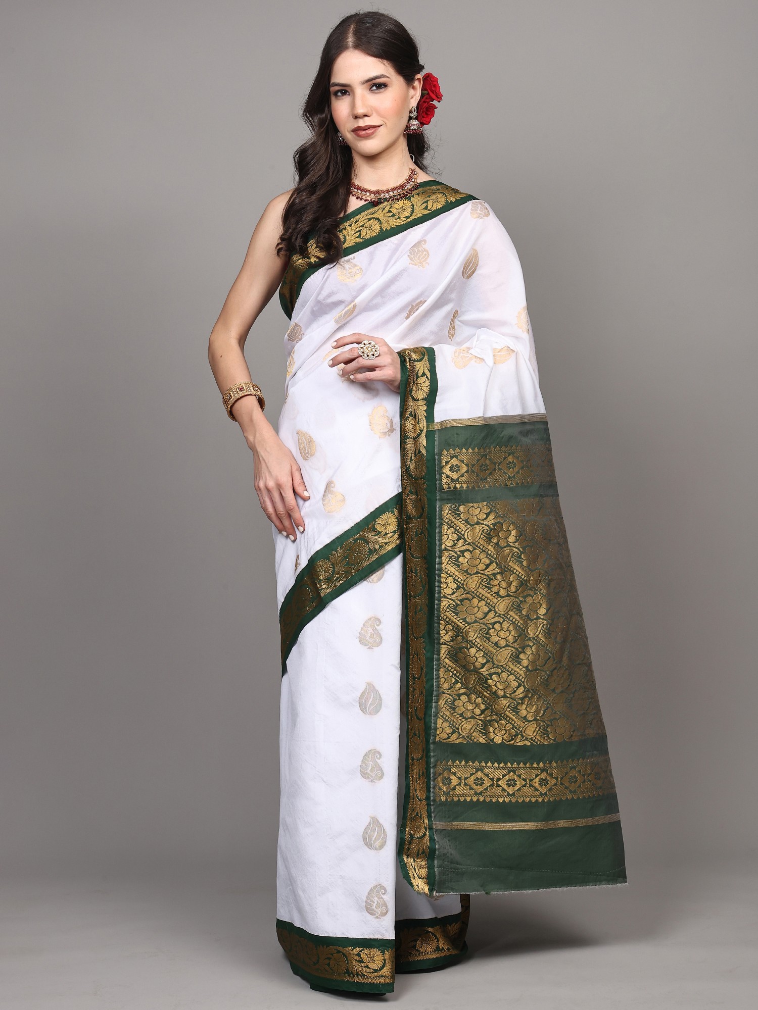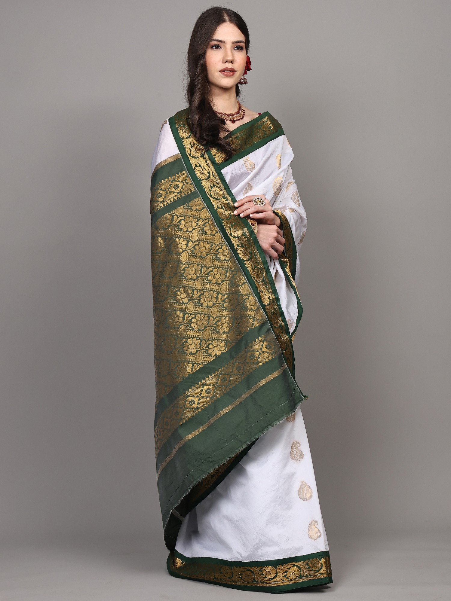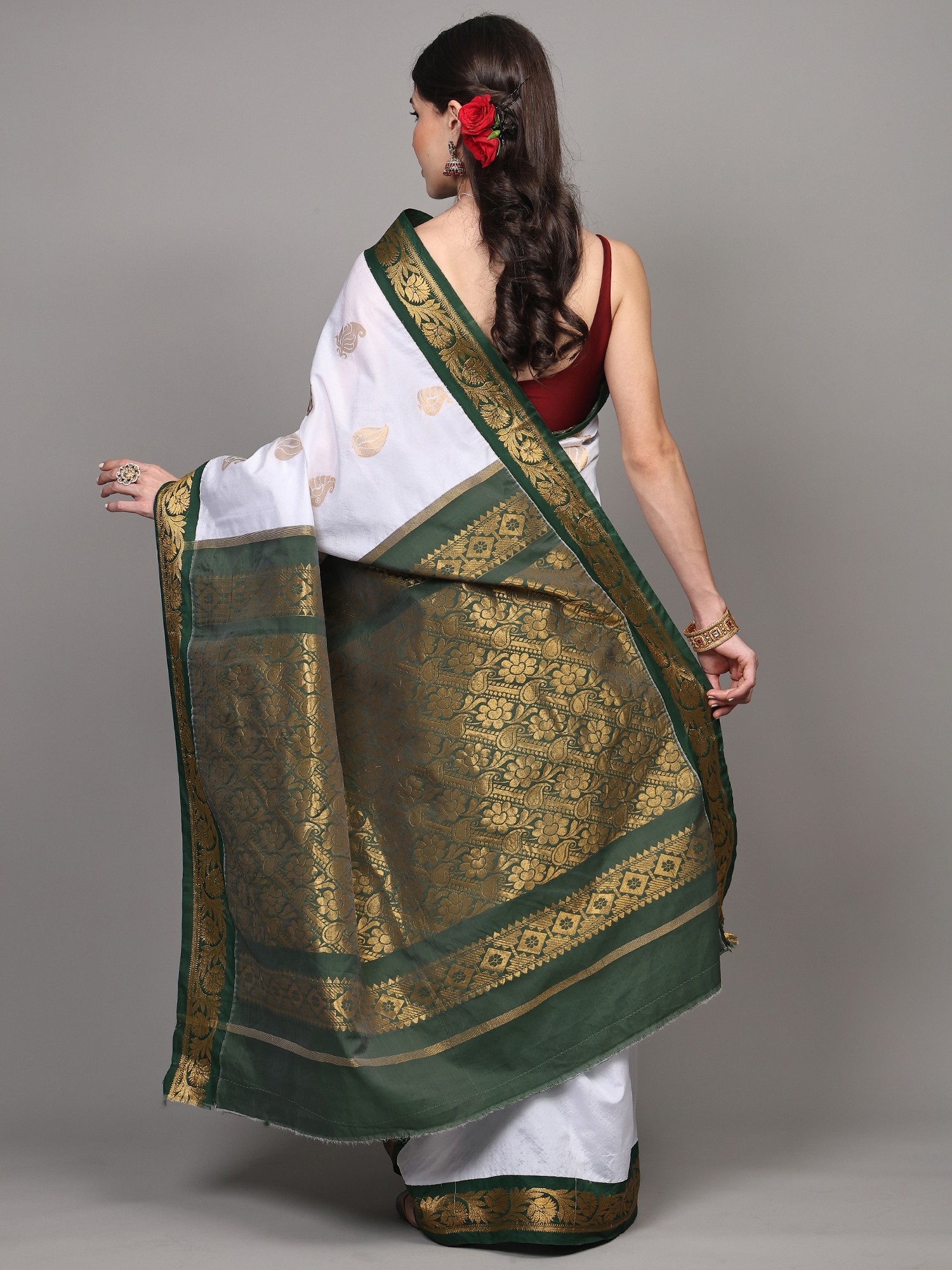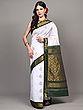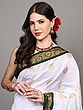 Snow-White Temple Saree with Zari Woven Motifs and Contrast Pallu-Border from Kumbakonam