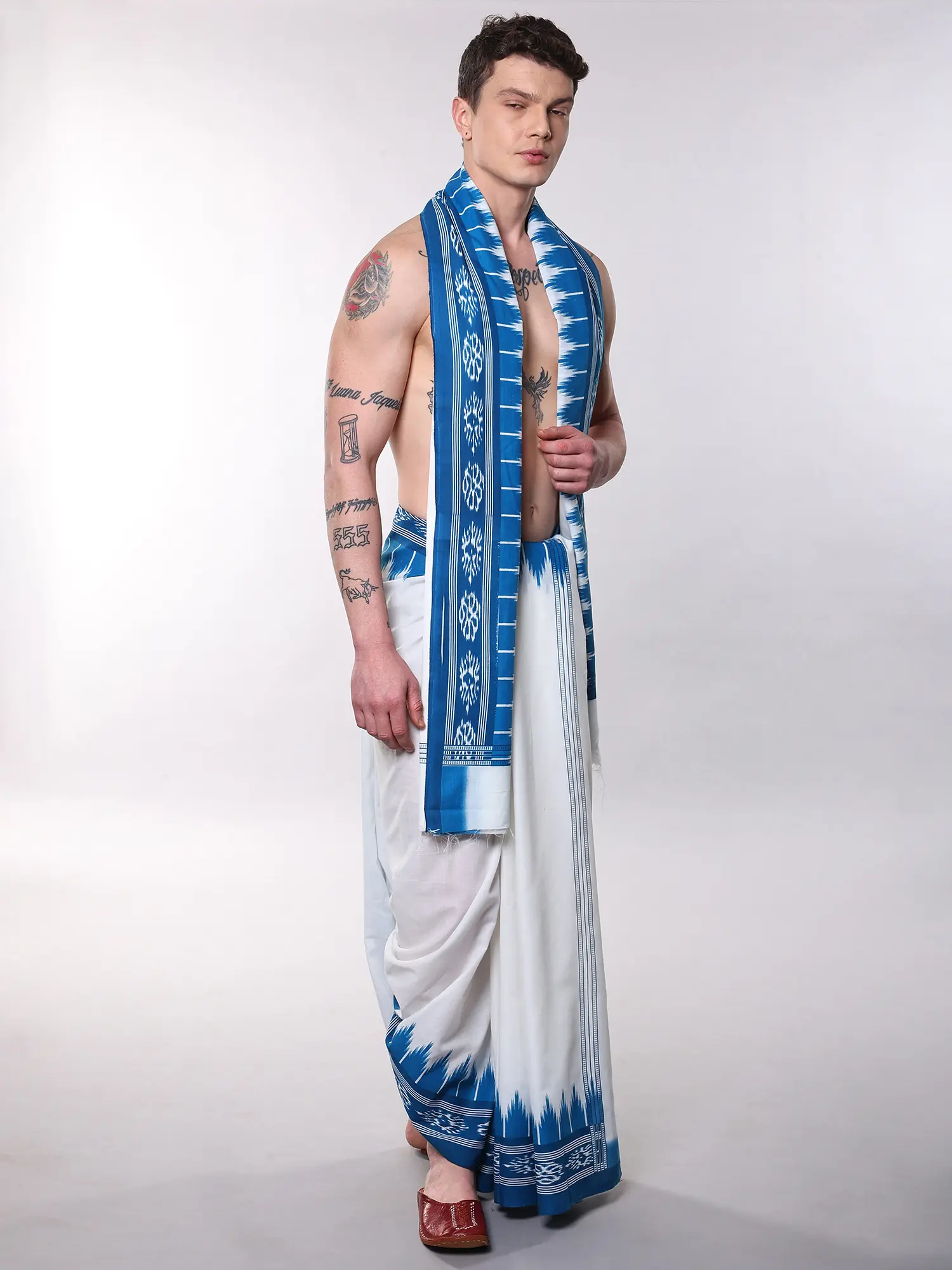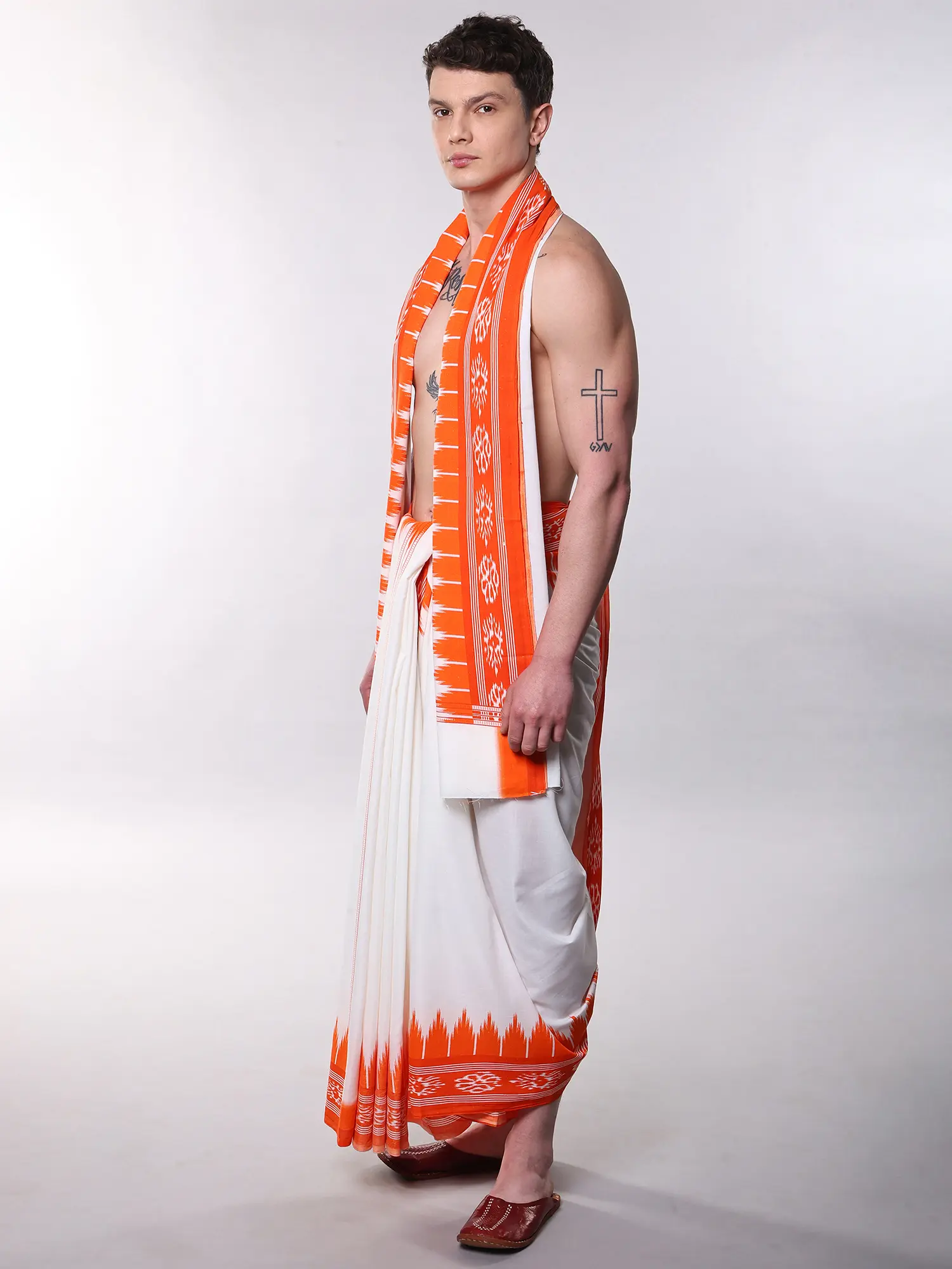 This style of draped attire carries with it centuries of cultural significance, often associated with religious ceremonies, auspicious occasions, and scholarly pursuits. It represents a connection to heritage, a symbol of respect and dignity that transcends time. Wearing this set allows you to partake in this rich historical narrative, honoring tradition with every graceful fold.