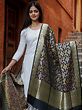 Step into the world of opulence with our Brocade Banarasi Meena Bird-Diamond Pattern Dupatta. Crafted in the heart of Banaras, it features a meticulously woven Meena motif and a floral Zari border. The brocade fabric is a symbol of luxury and tradition. The Meena work, inspired by nature and birds, is an art that has evolved through centuries. This dupatta is not just an accessory; it's a piece of history and artistry, where traditional motifs dance in harmony with contemporary fashion, creating a versatile addition to your collection.