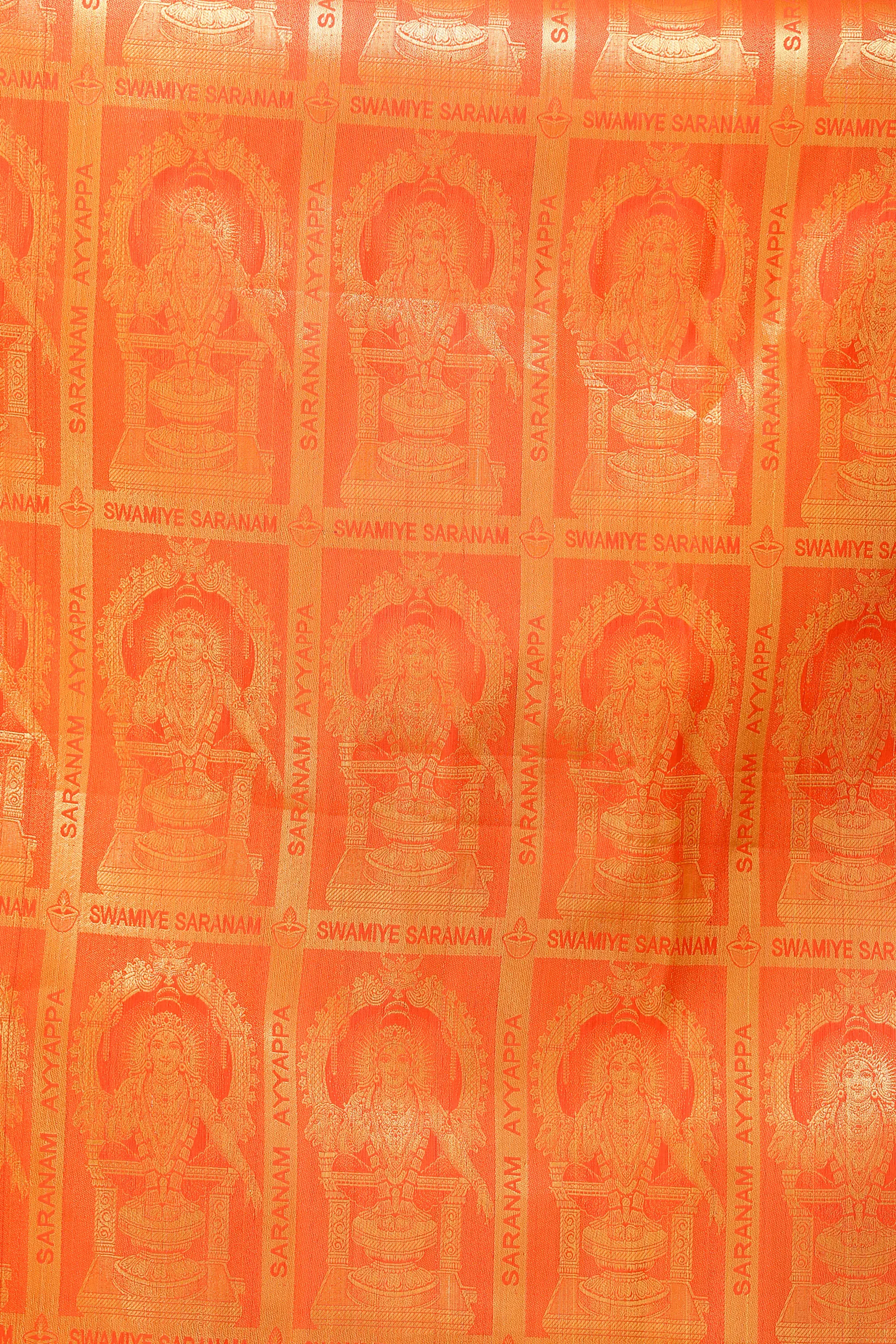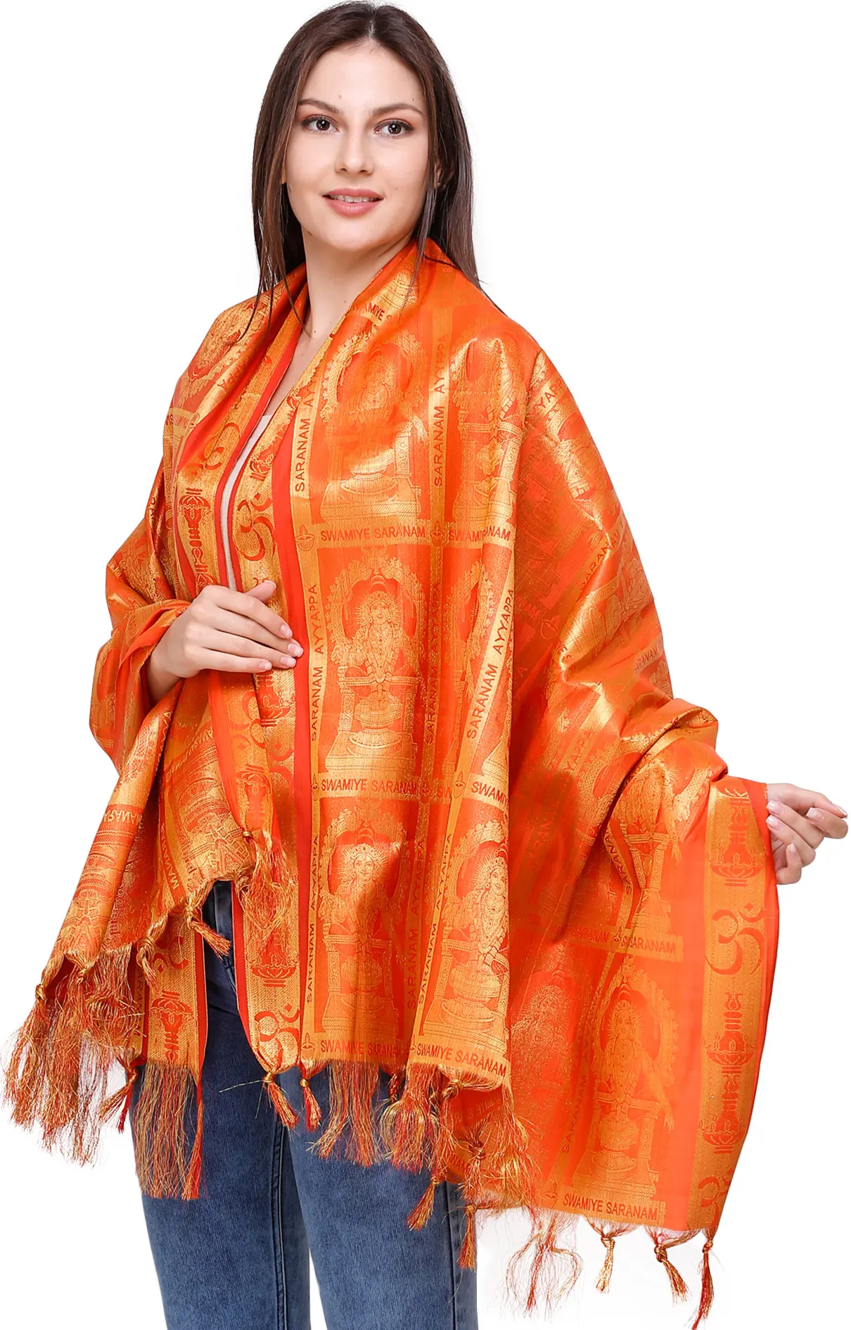 Autumn-Sunset Lord Ayyappan South Indian Prayer Shawl from Tamil Nadu with Printed Mantra