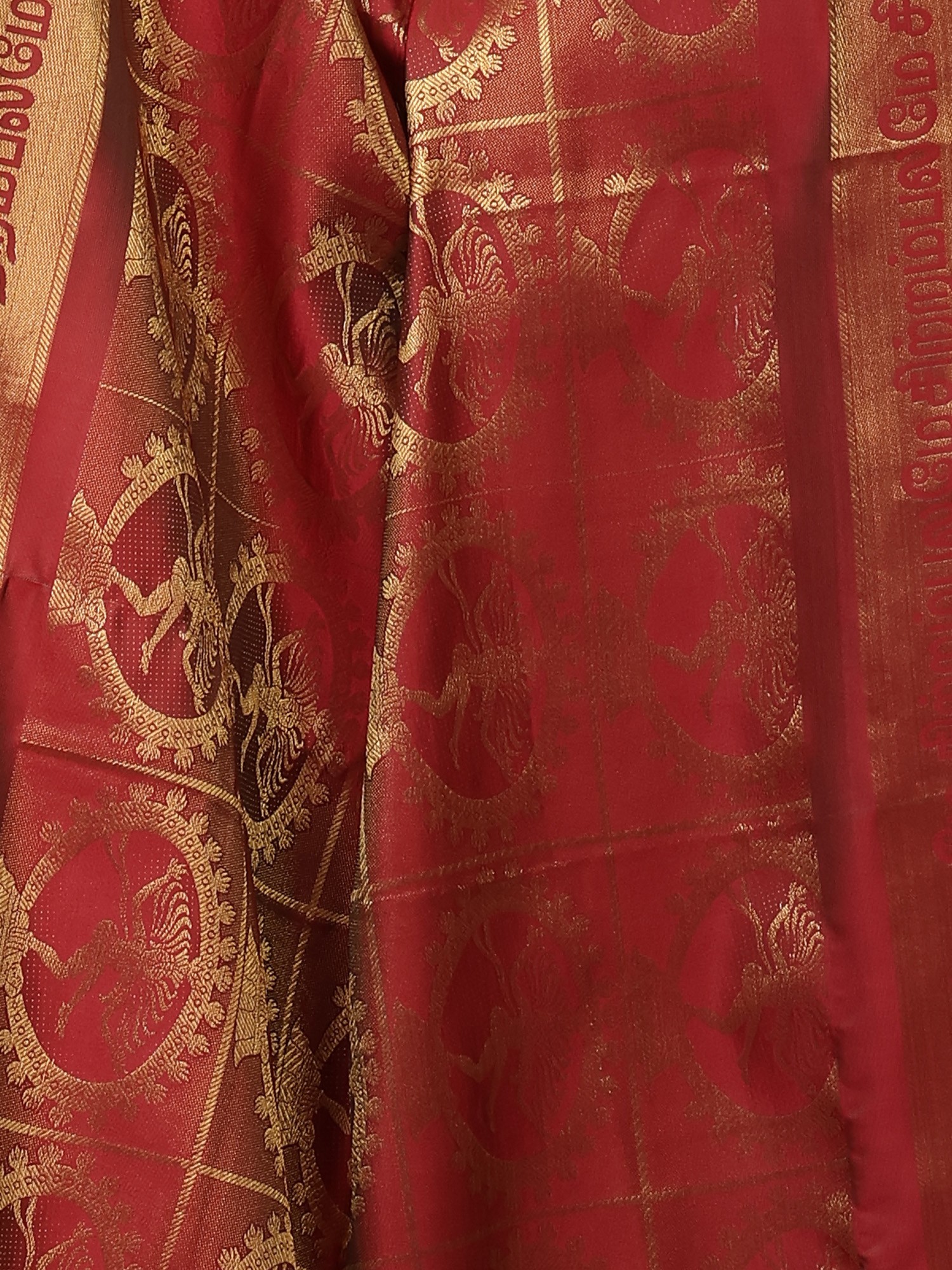 Brocaded Nataraja (Dancing Lord Shiva) Ponnadai Prayer Shawl from Tamil Nadu
