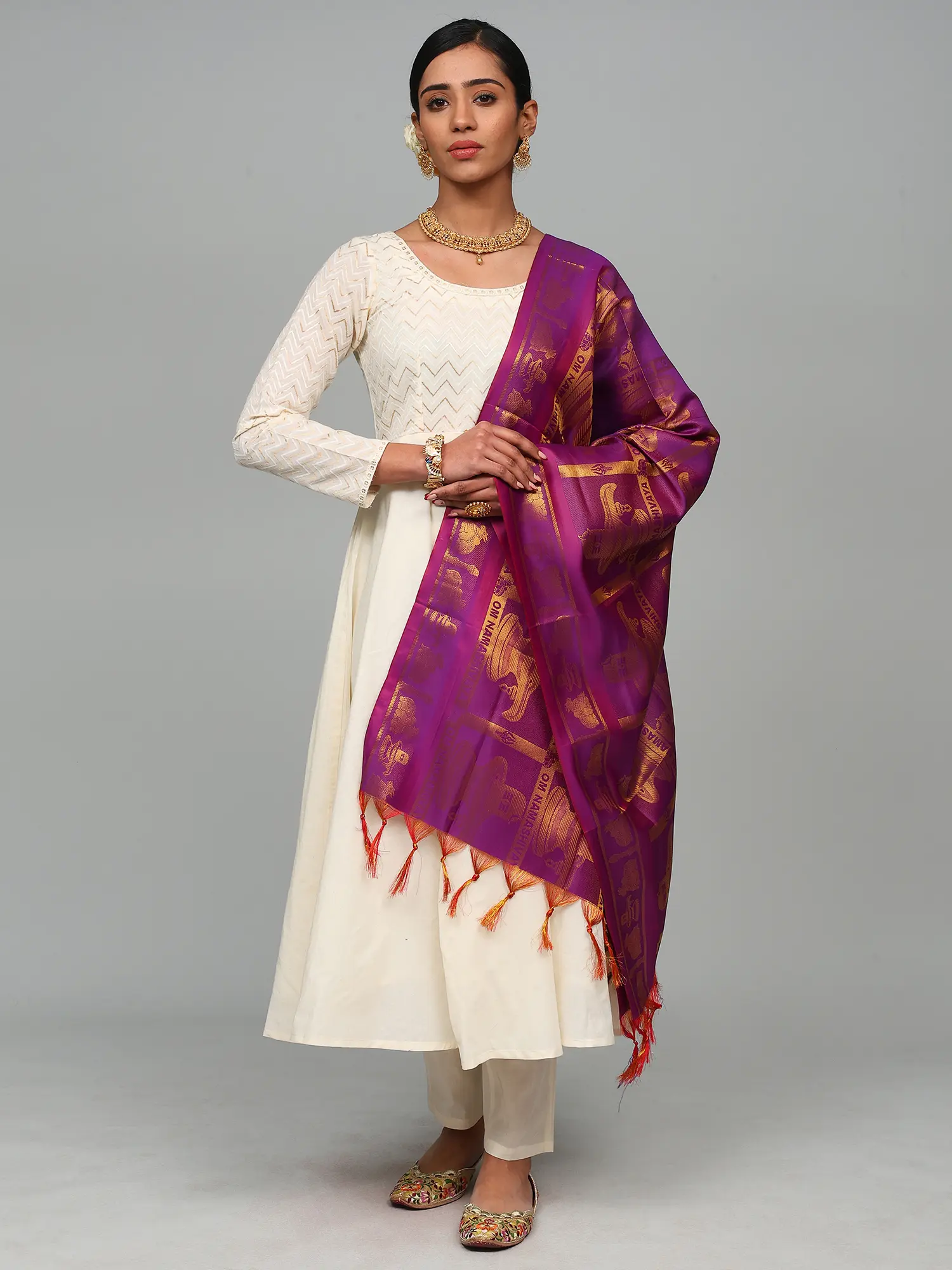 This prayer shawl is crafted from high-quality art silk, renowned for its luxurious feel, subtle sheen, and comfortable drape. The art silk's smooth texture lends itself beautifully to the intricate brocade work, allowing the golden threads to shimmer and catch the light, creating a captivating visual effect. The dimensions of the shawl—68 inches in length and 33 inches in width—offer generous coverage, ensuring comfort and warmth while meditating or engaging in prayer. The rich color and smooth texture make it a delightful sensory experience, enhancing the overall spiritual practice.