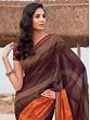 Brown-Stone Chiffon Party Wear Designer Saree With Resham Work