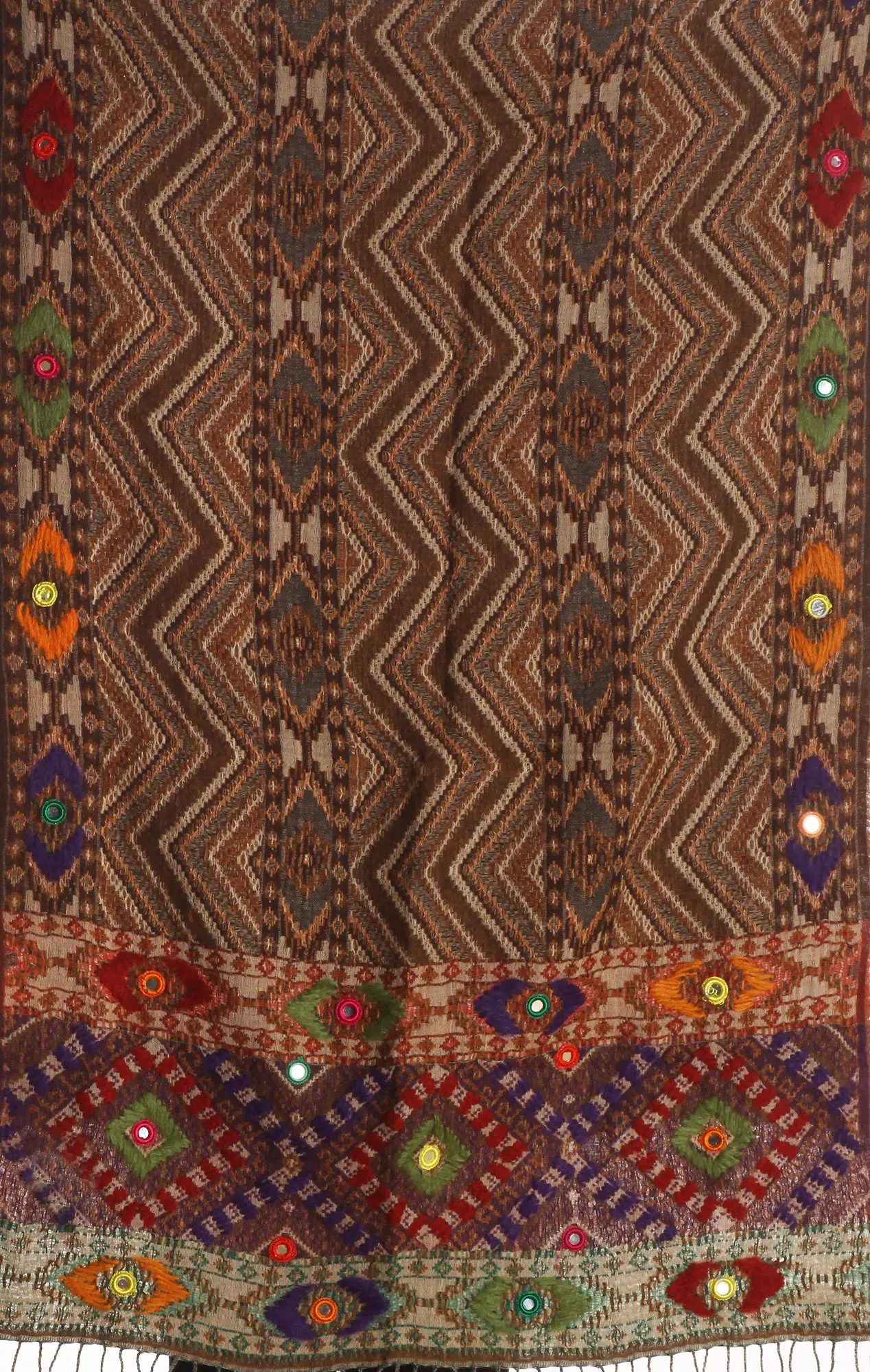 Jet-Black Pure Wool Stole from Srinagar with Sozni Embroidered Paisleys Bootis
