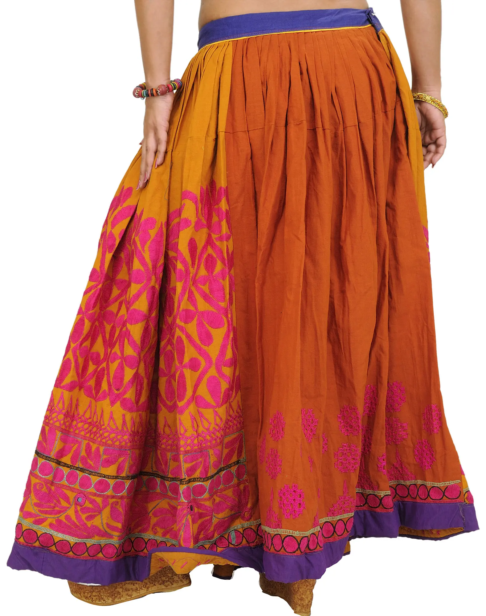 Ghagra Skirt from Kutch with Multicolor Thread Embroidered Patch Border and Mirrors