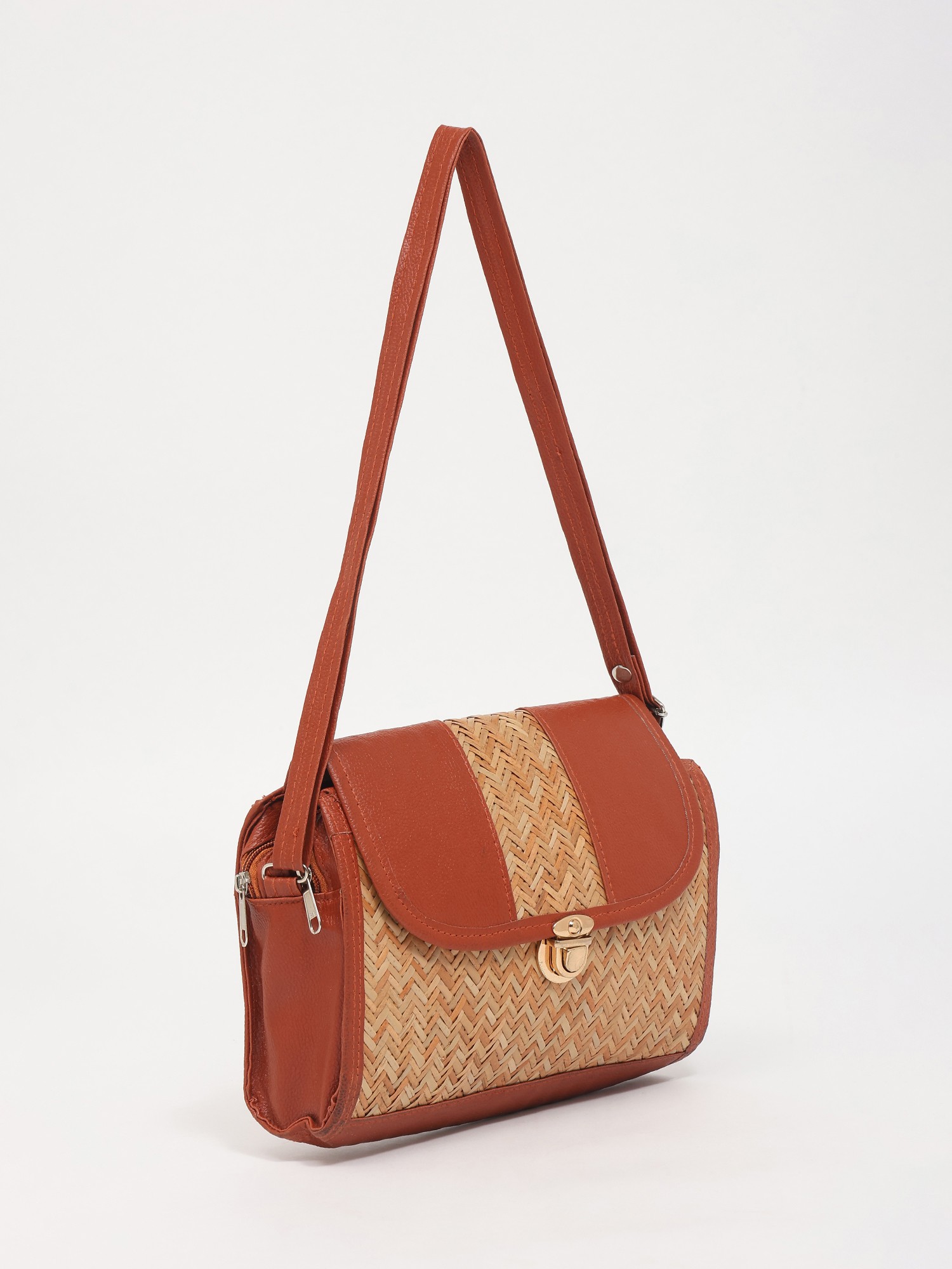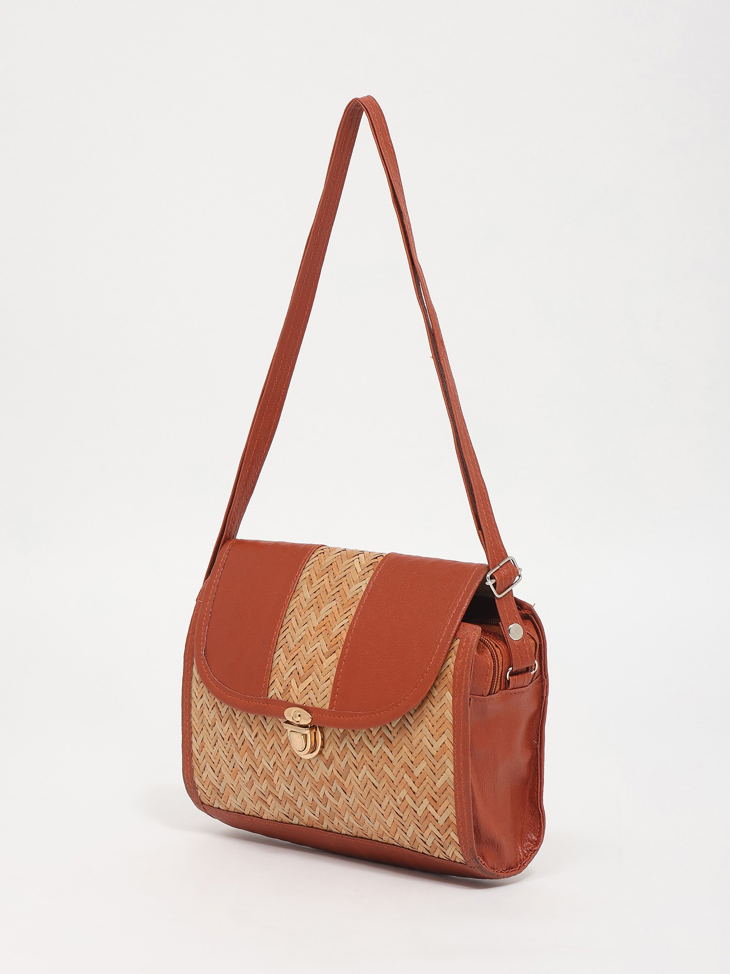 Handcrafted Natural Bamboo Stripe Hand Bag