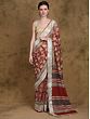 Kalamkari Dupatta from Telangana with Zari Border and Floral Print All-Over