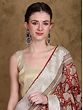 This saree is meticulously crafted using premium-quality crepe silk, ensuring a luxurious and comfortable feel against your skin. The fabric's subtle sheen enhances the richness of the colors, making it a perfect choice for special occasions or any event where you wish to make a statement. The intricate floral vine print is a testament to the exceptional skill of the artisans who have poured their heart and soul into its creation. You can feel the quality in every thread, the craftsmanship in every detail, and the history woven into its very being.