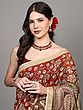 Scarlet-Sage Kalamkari Saree from Telangana with All-Over Printed Floral Jaal
