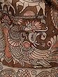Kalamkari Saree from Telangana with Printed Warli Folk Art Motifs and Peacock-Elephant on Anchal