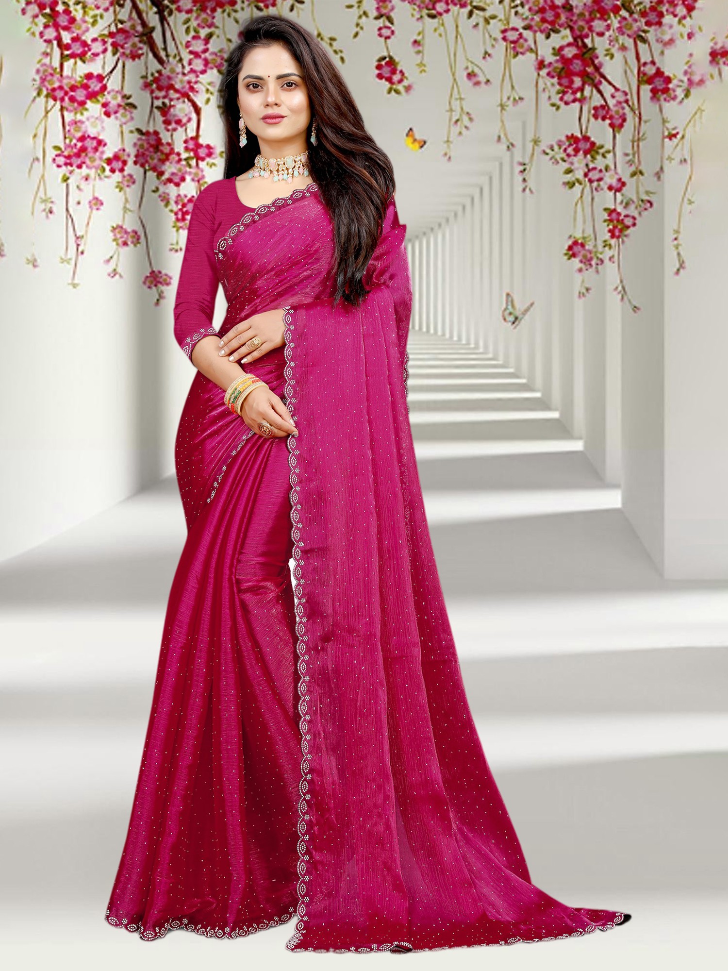 Royal-Purple Georgette Saree with Parsi Embroidered Roses on Border