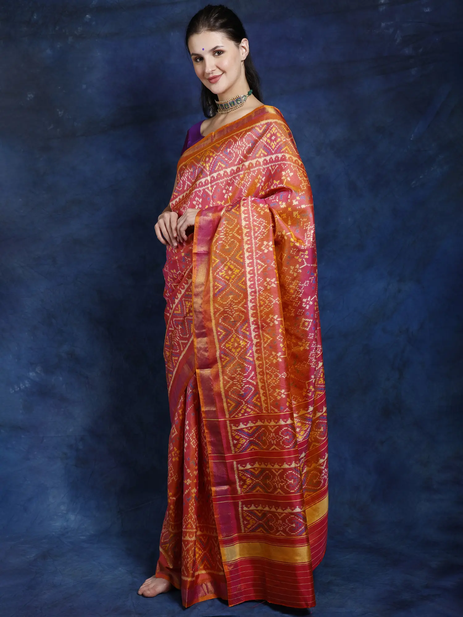 Gharchola Sari from Gujarat with Zari-Woven Elephants and Peacocks