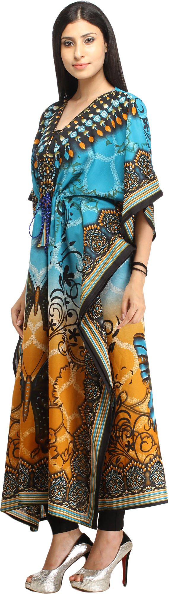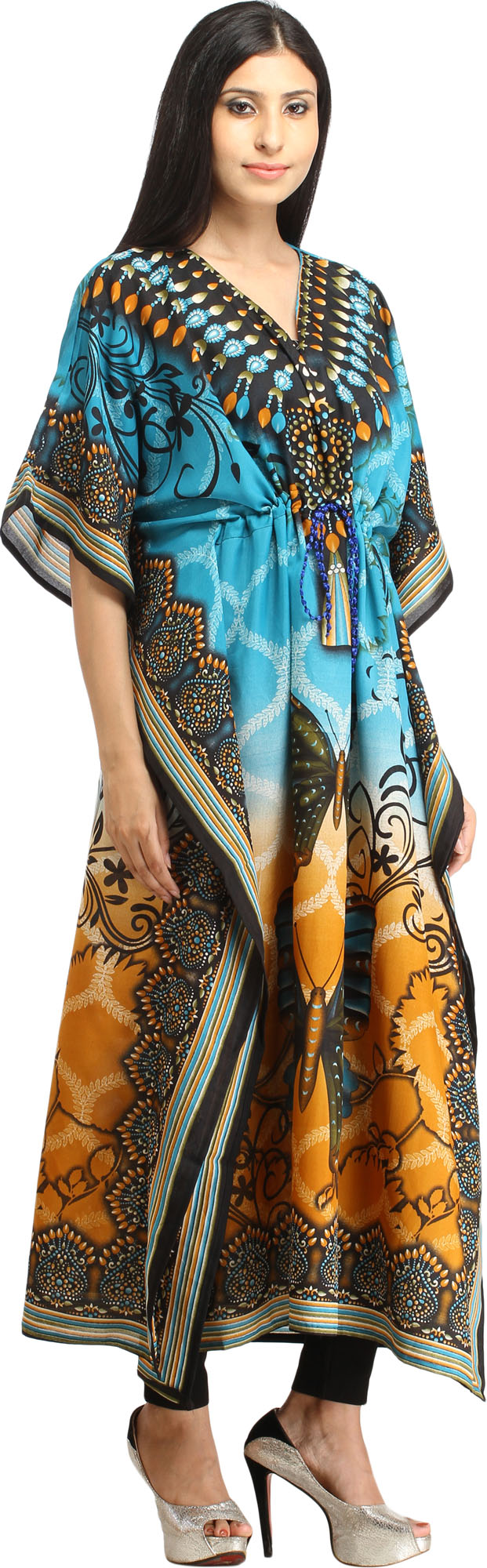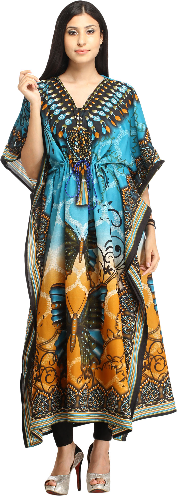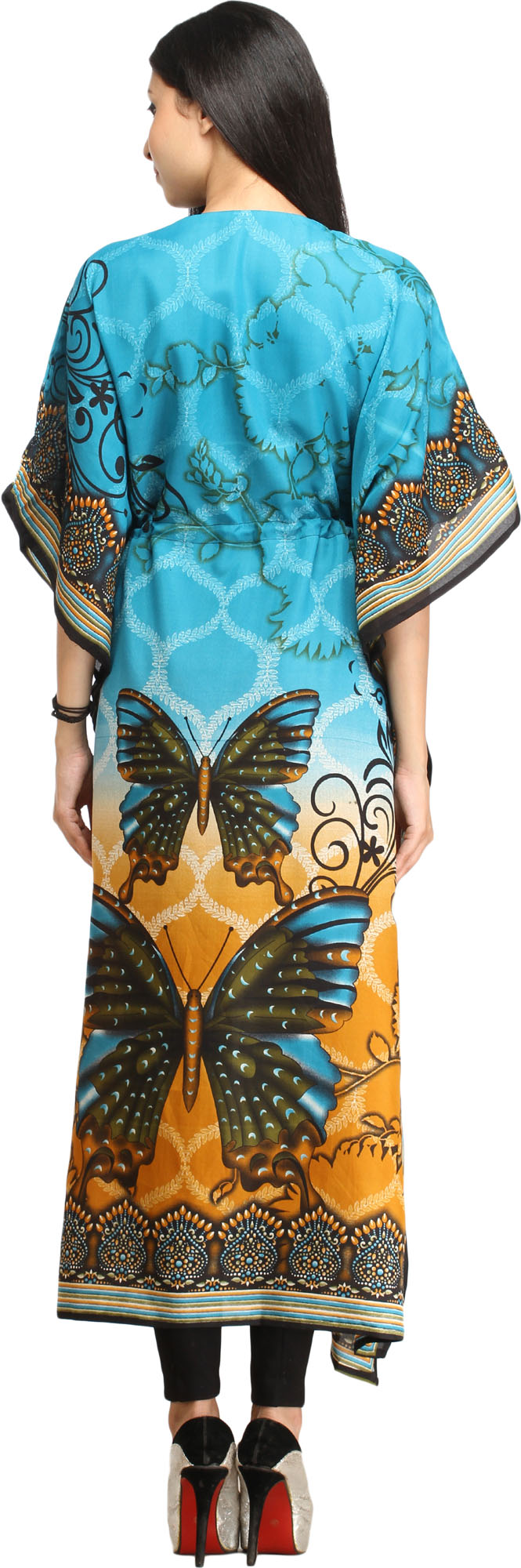 Embodying grace and charm, this magnificent “Kaftan” showcases a mesmerizing display of butterflies in a stunning digital-print, evoking a sense of joy and enchantment. The delicate Dori at the waist adds a touch of refinement, letting you tighten it for a pleasing shape. Made from high-quality viscose, this royal robe drapes beautifully, guaranteeing luxurious comfort. Whether reclining at home or wandering along sandy coasts, this majestic kaftan is your passport to eternal allure.