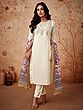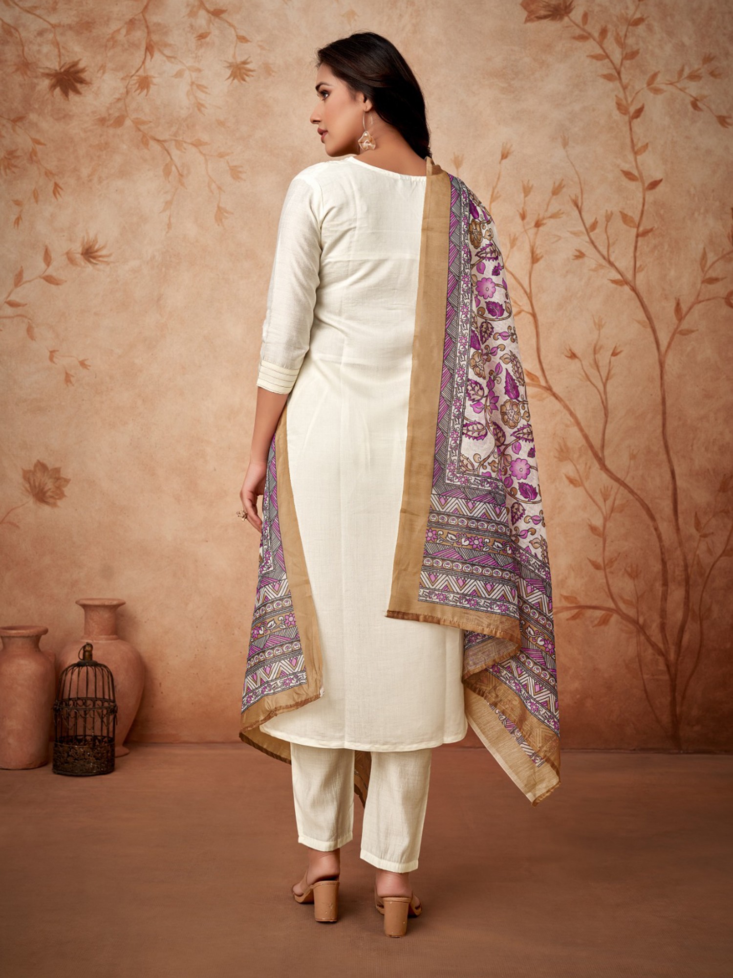 Buttery-White Viscose Chanderi Embroidered Work Attractive Kurta Set With Matching Dupatta