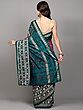Black and Grey Pure Cotton Ikat Saree from Sambalpur with Temple Border