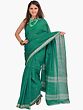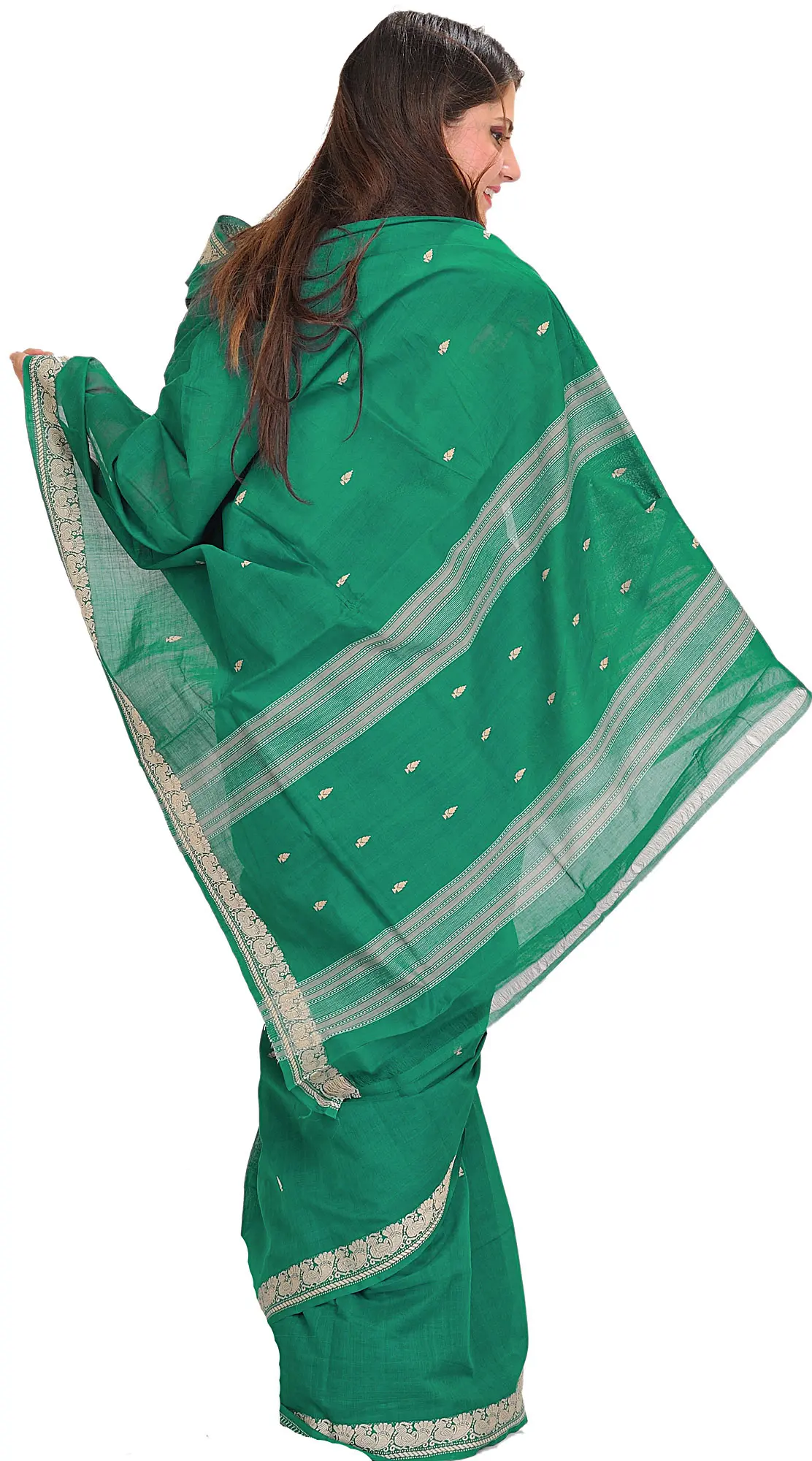 Spinach-Green Tangail Sari from Bengal with Woven Bootis and Paisleys on Aanchal