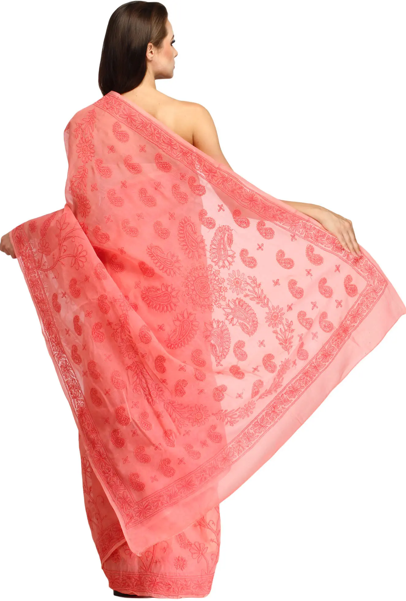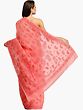 Black and Peach-Bloom Salwar Kameez Fabric with Lukhnawi Chikan Embroidery by Hand