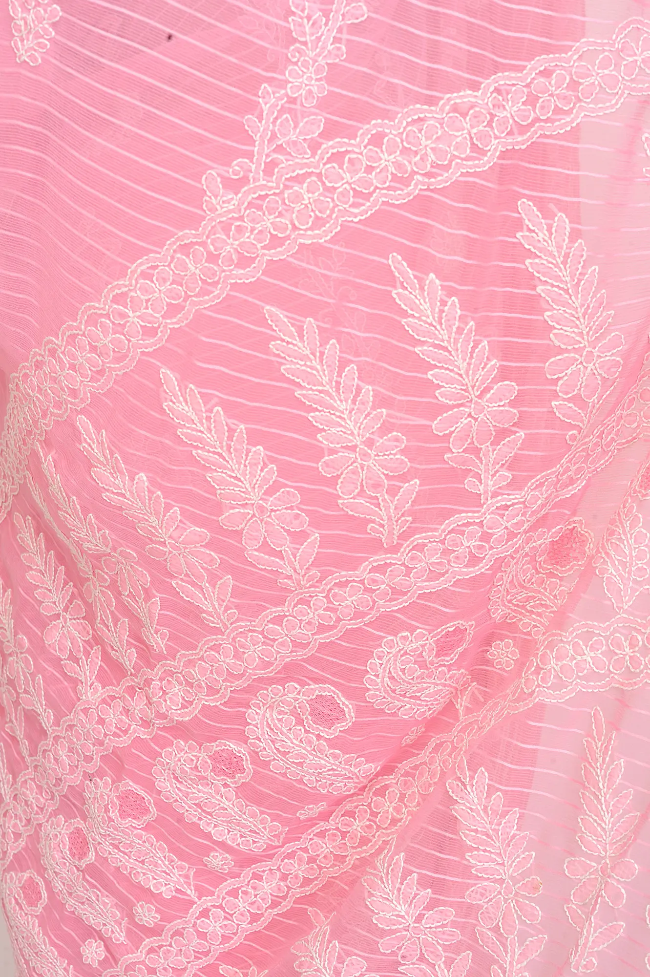 Black and Peach-Bloom Salwar Kameez Fabric with Lukhnawi Chikan Embroidery by Hand