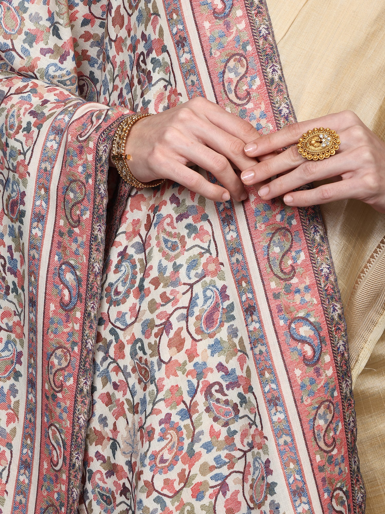 Wool Jamawar Shawl with Woven Flowers and Paisleys from Punjab