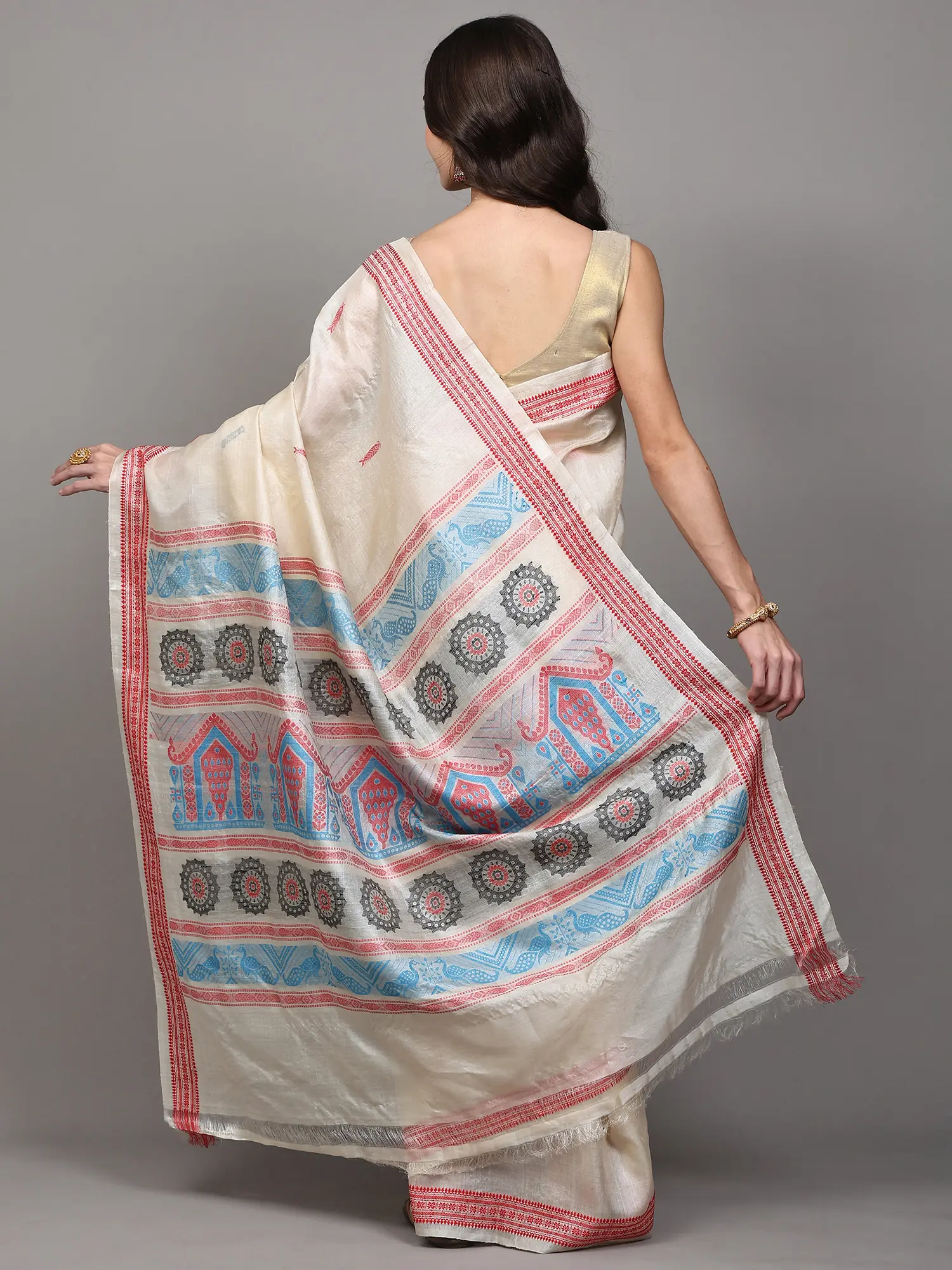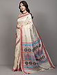 Kosa Tussar Silk Saree with Hand Block Printed Tribal Drummer Figures from Bengal