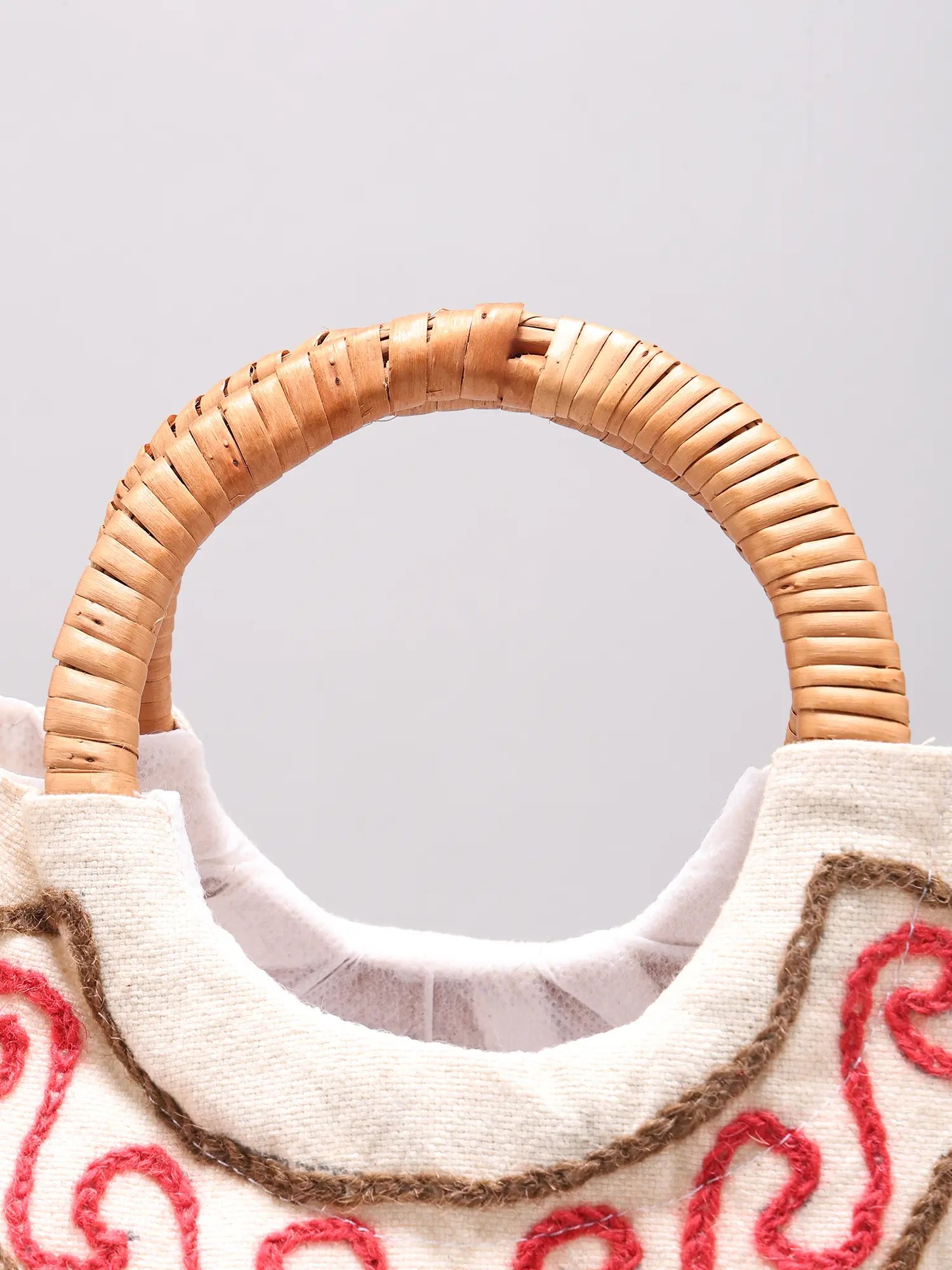 Experience the fusion of natural beauty and meticulous craftsmanship with this exceptional carryall, designed to elevate your everyday ensemble. Its striking floral embroidery and unique wooden handle promise to be a conversation starter, embodying a spirit of refined bohemian elegance.