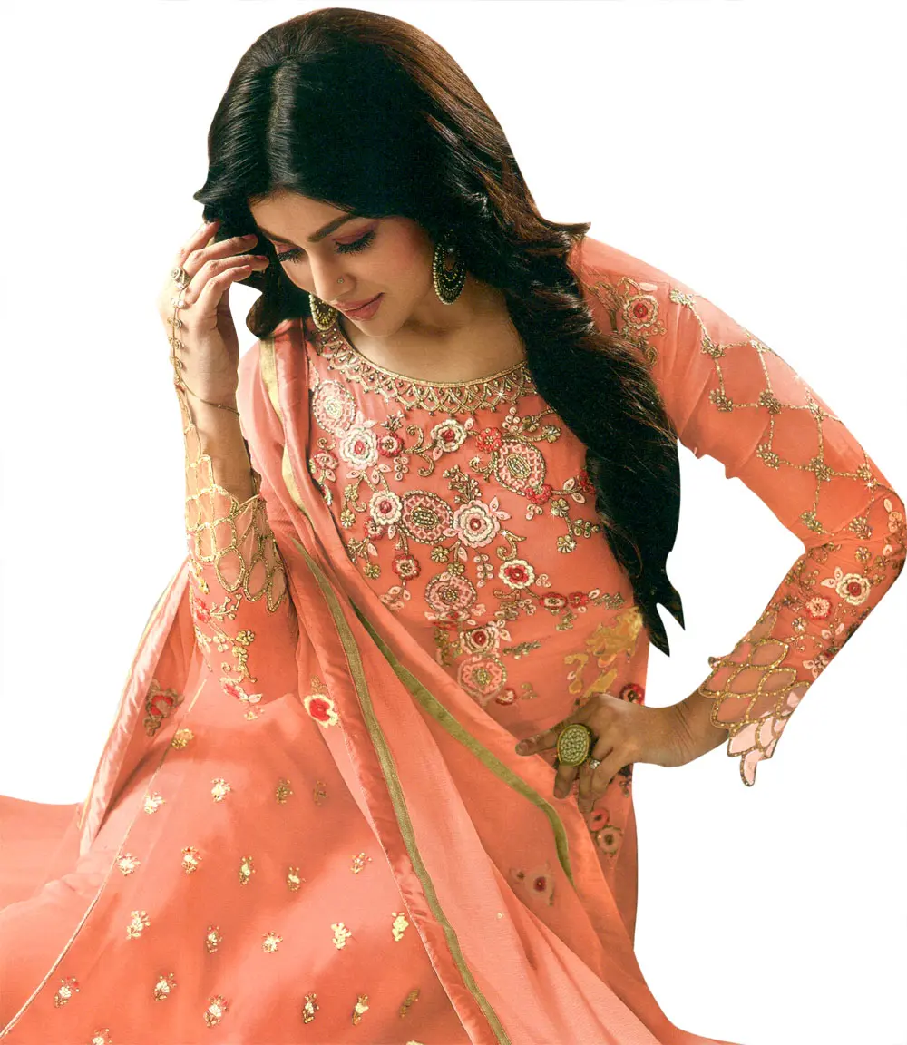 Completing this stunning set is a flowing georgette dupatta. The dupatta is a delicate whisper of the kameez's color, subtly enhanced with matching zari embroidery and a hint of sparkle. It can be draped in various styles to suit your personal preference and the occasion, adding an extra layer of grace and allure to your overall appearance. This entire ensemble is designed to make you feel confident, radiant, and utterly unforgettable. Whether you're attending a wedding, a festive celebration, or an elegant evening event, this salwar kameez suit promises to be a show-stopping addition to your wardrobe.
