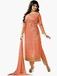Hot Coral Chudidar Kameez Suit with Self-Colored Embroidery and Crochet Border