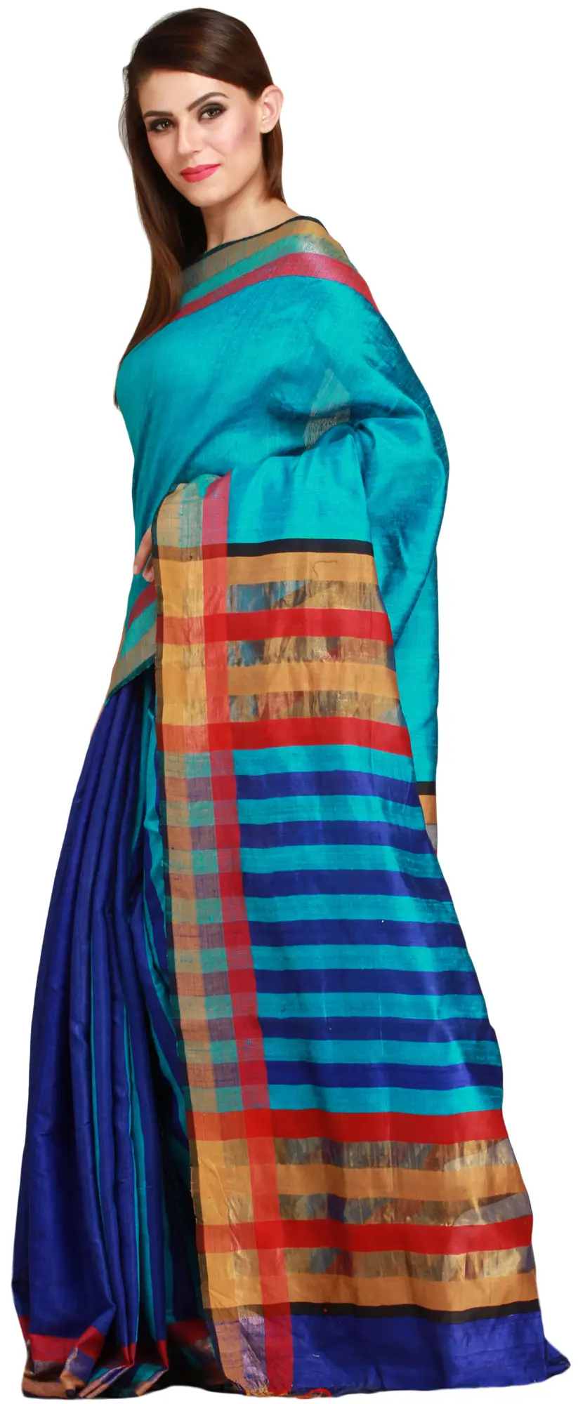 Vibrant-Pink Purbasthali Sari from Jharkhand with Woven Stripes