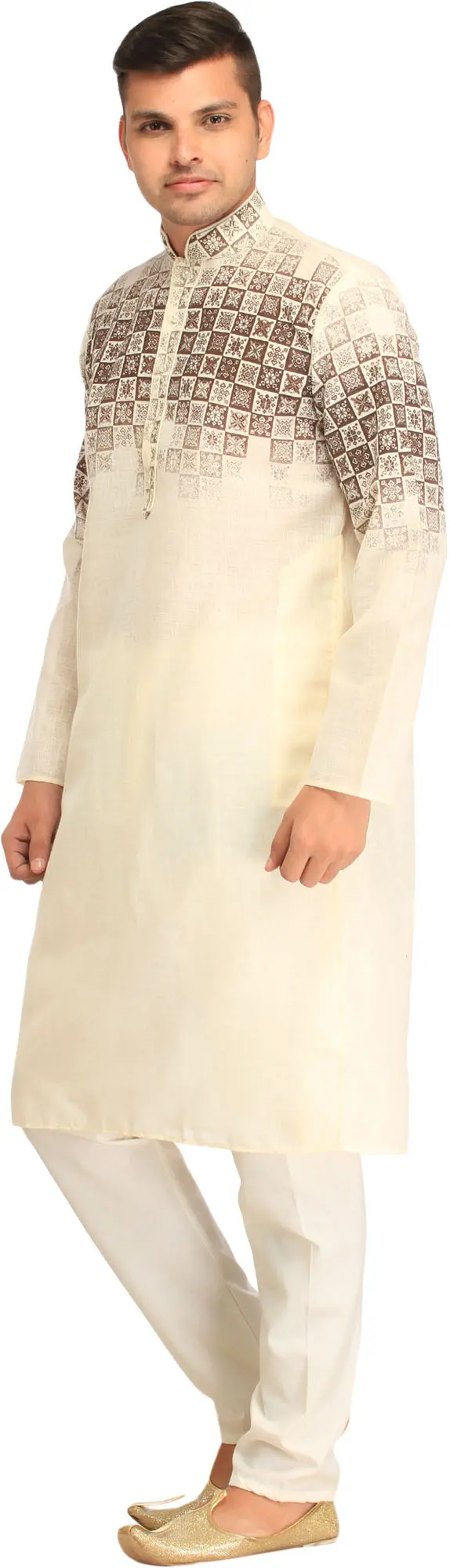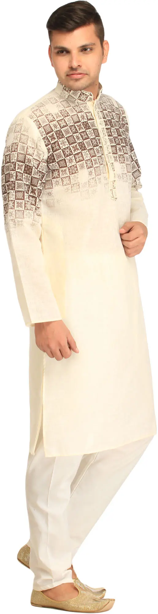 Full Sleeve And Mandarin Collar Straight Digital Print Festive Wear Cotton Kurta Pajama Set
